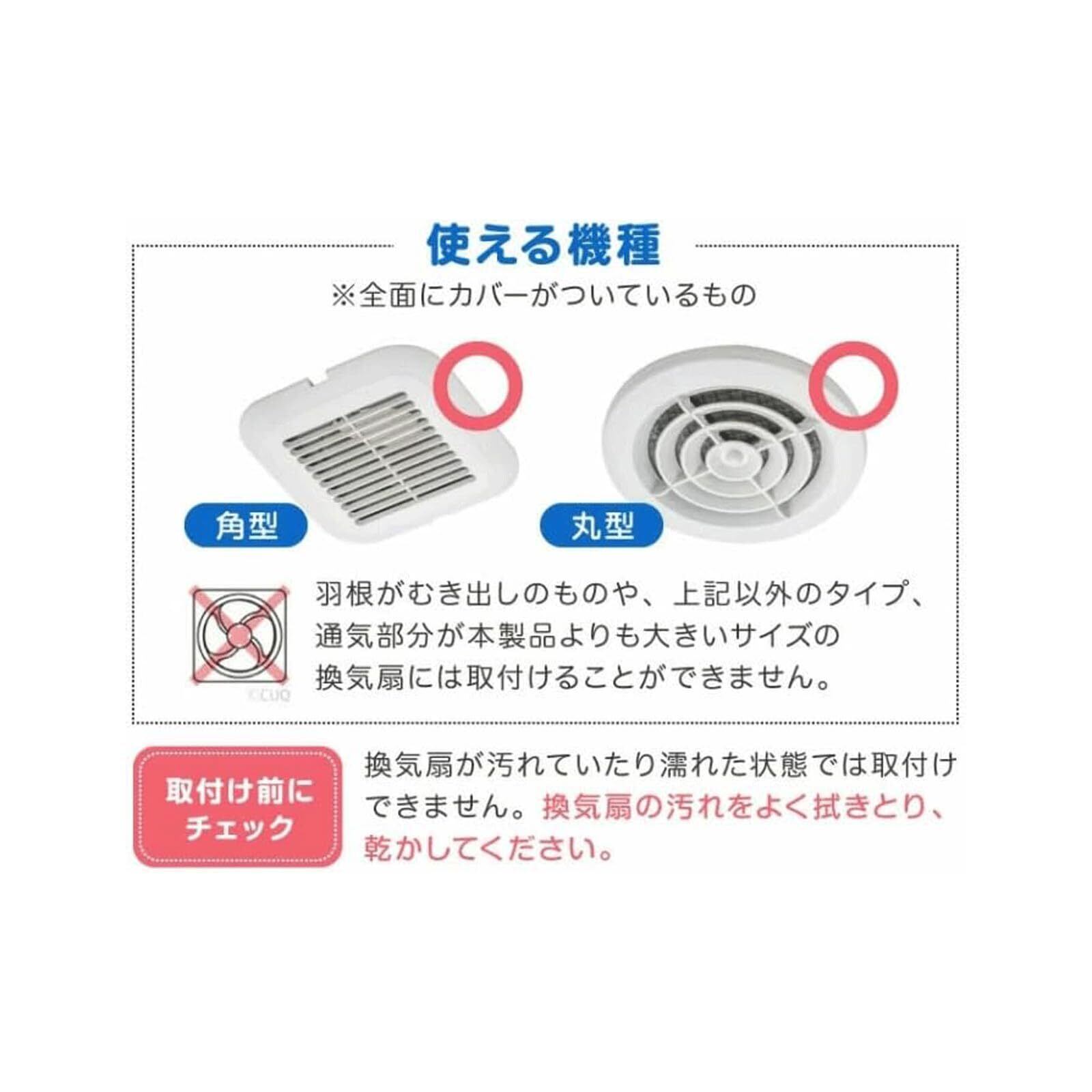 使用目的:この製品は、トイレや脱衣所、お風呂の換気扇のホコリ汚れを防止するためのものです。