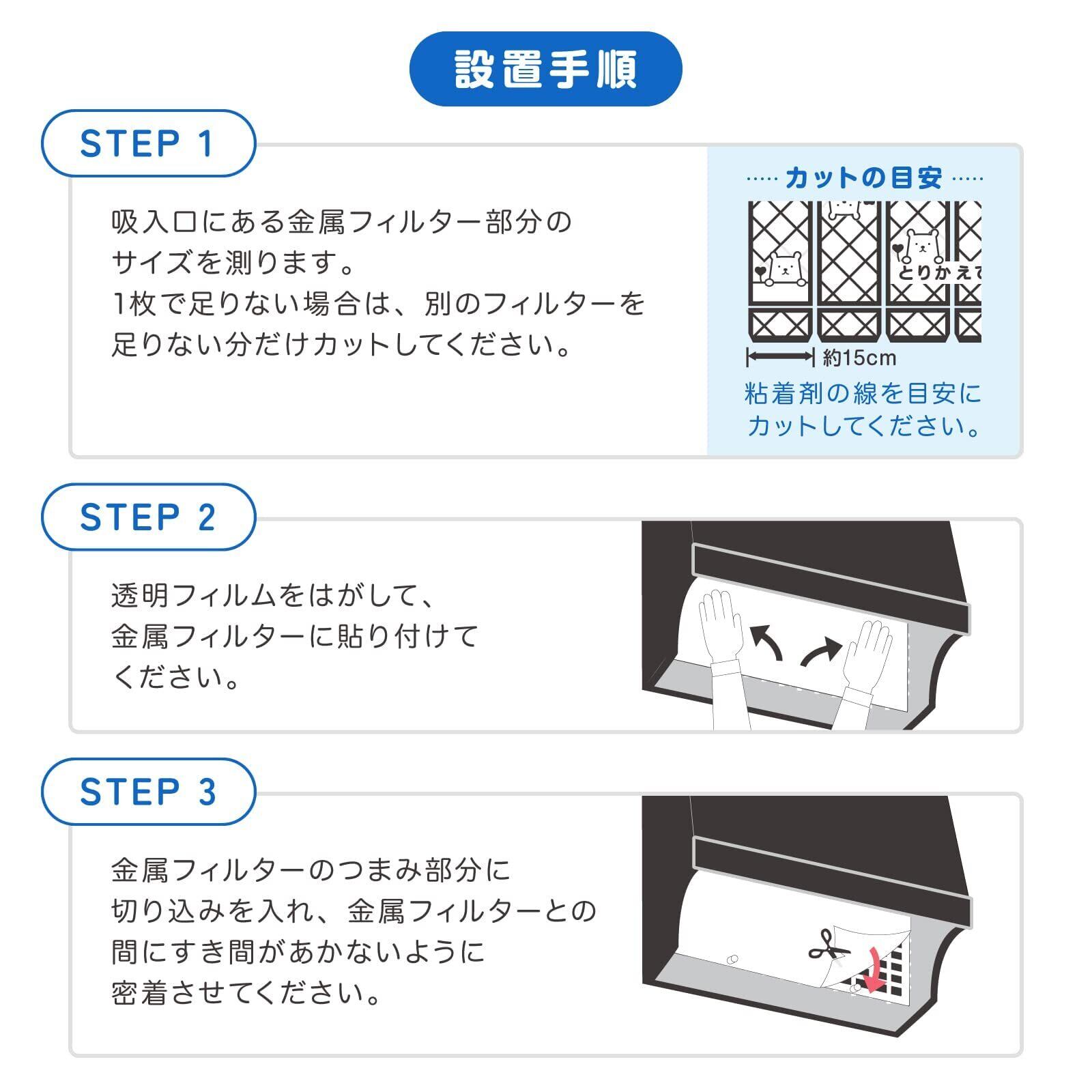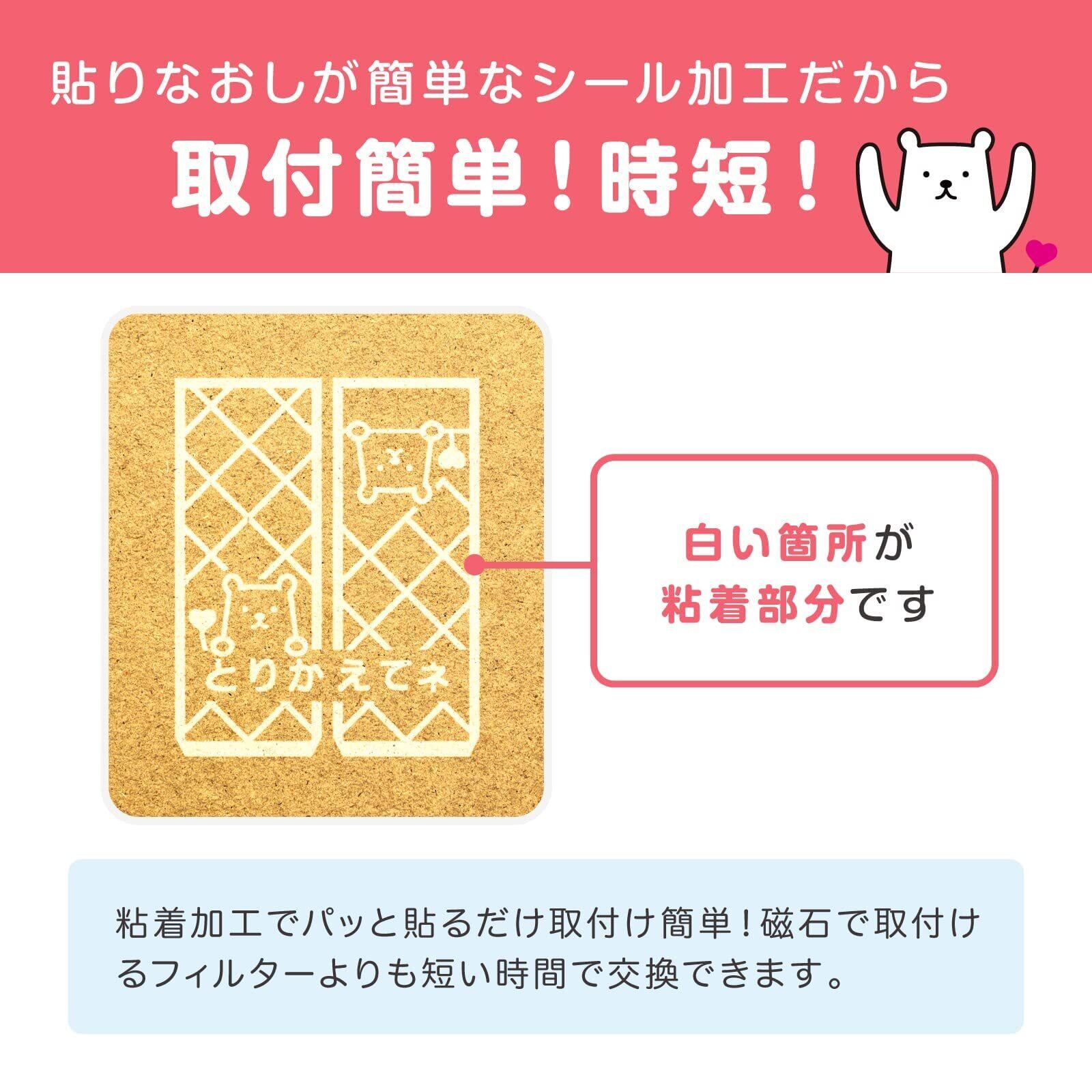 のり残りしにくい粘着タイプのフィルターなので、取付けがシールのように簡単・キレイに行えます