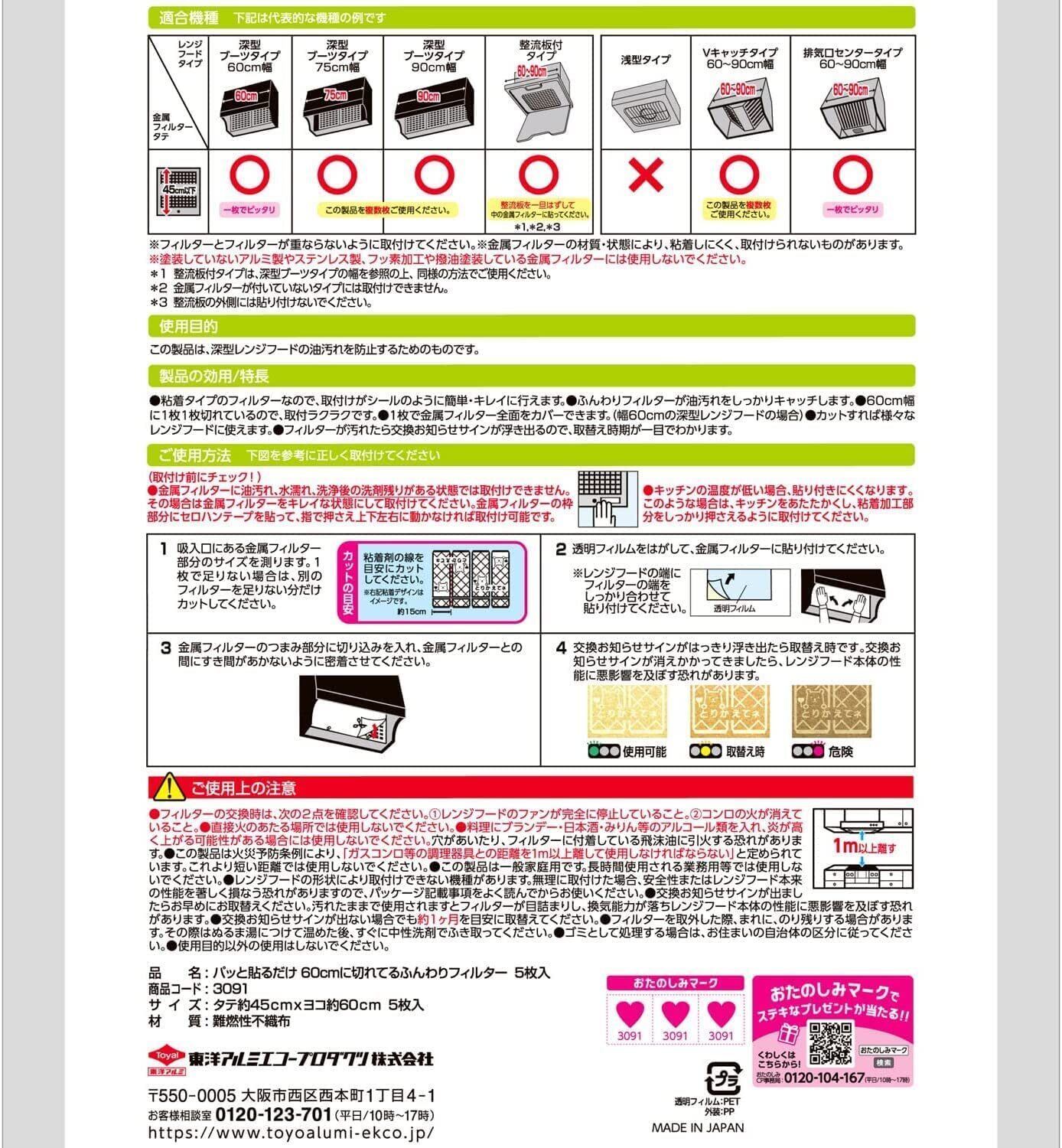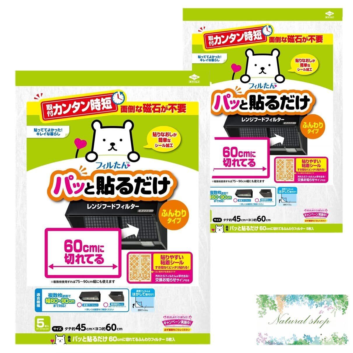 東洋アルミ パッと貼るだけレンジフードフィルター 約45cm×60cm 5枚×2セット 磁石要らずでカンタン 60cm幅のレンジフードにぴったり 換気扇 3091 おまけつき まとめ買い | KSショップ