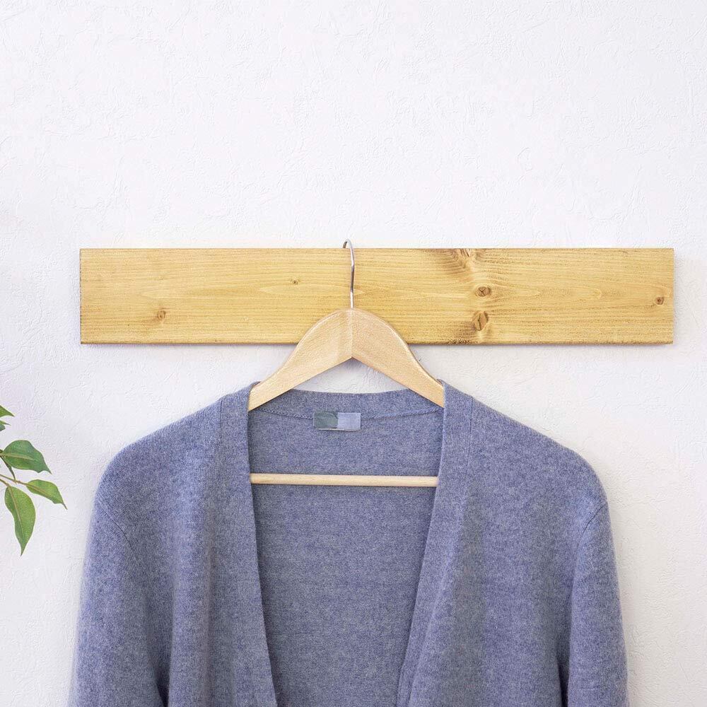 厚み15~19ミリの木材、別売りの専用フック、シェルフ、ハンガーと組み合わせてお好みの壁面収納が作れます。