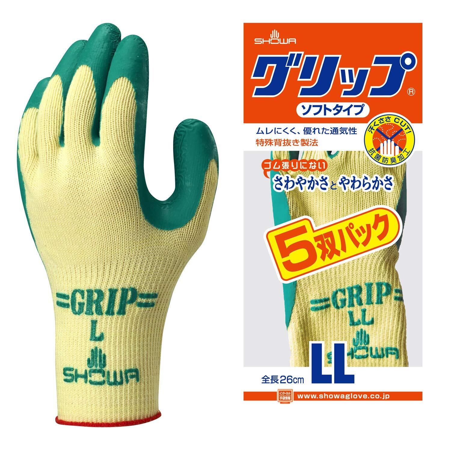 ショーワグローブ 【5双パック】No.310グリップ(ソフトタイプ) グリーン LLサイズ 5双