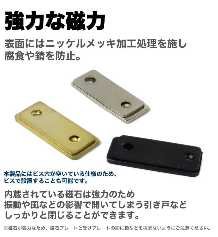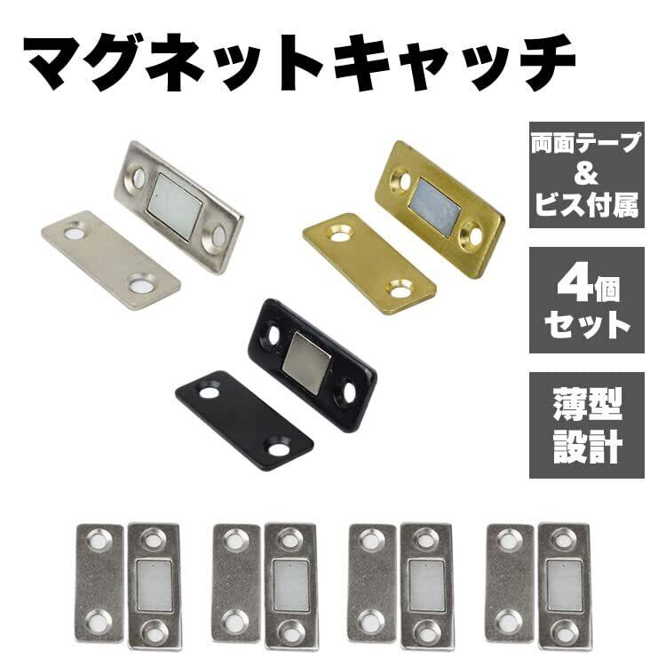 prendre 【4個セット】 マグネットキャッチ 磁気キャッチ ステンレス 薄型 強力 ドア止め金具 家具扉 戸棚 ドアキャッチ DIY 引き戸 両面テープ ネジ (ブラック) PR-MAGCATCH4-BK | KSショップ