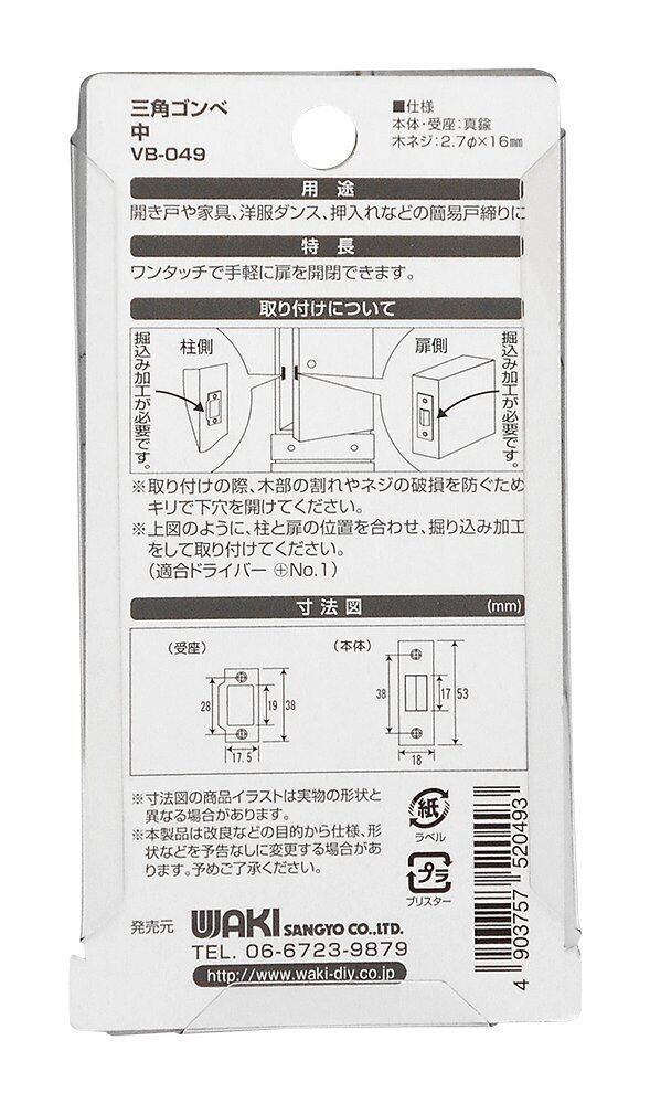 和気産業(Waki Sangyo) 三角ゴンベ 引き戸 家具 押入れ 真鍮 中 VB-049