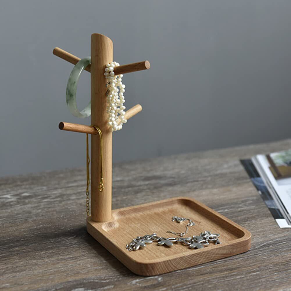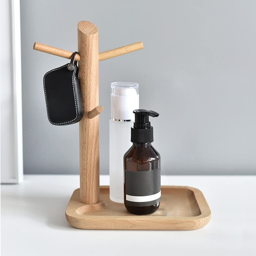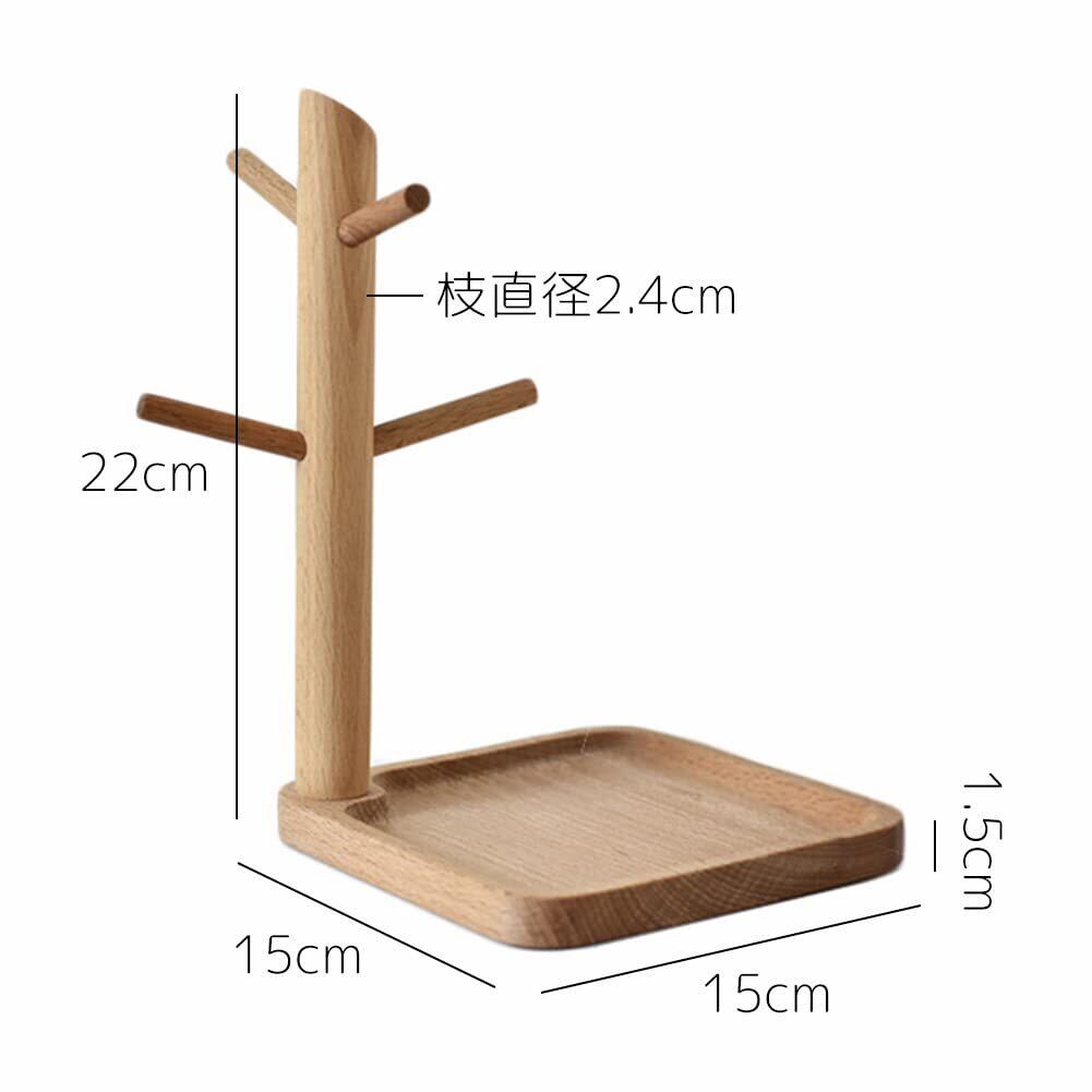【仕様】木製枝様式の鍵スタンド、素材:ブナ。プロセス:木材の表面は繰り返し磨かれます。木目ははっきりしている質感。スタイル・サイズ・重量:トレイ・スクエア:15*15*22cm、ベース高さ1.5cm、枝直径2.4cm、0.25kg。漆なし、エコ。