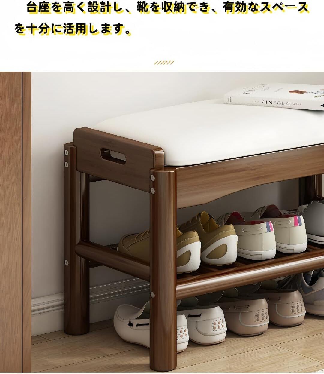 【多機能で、靴の履き替えと収納機能が一体化】シューズベンチは、靴の履き替え機能だけでなく、巧妙に設計された収納機能も兼ね備えています。大サイズの靴などをきちんと整理し、靴の履き替えプロセスをより便利にし、同時にリビングスペースを整頓した状態に保つことができます。