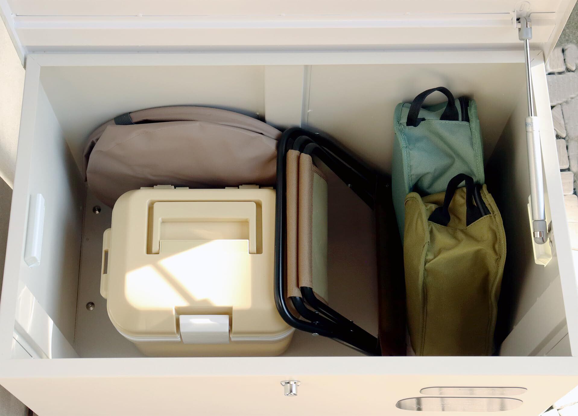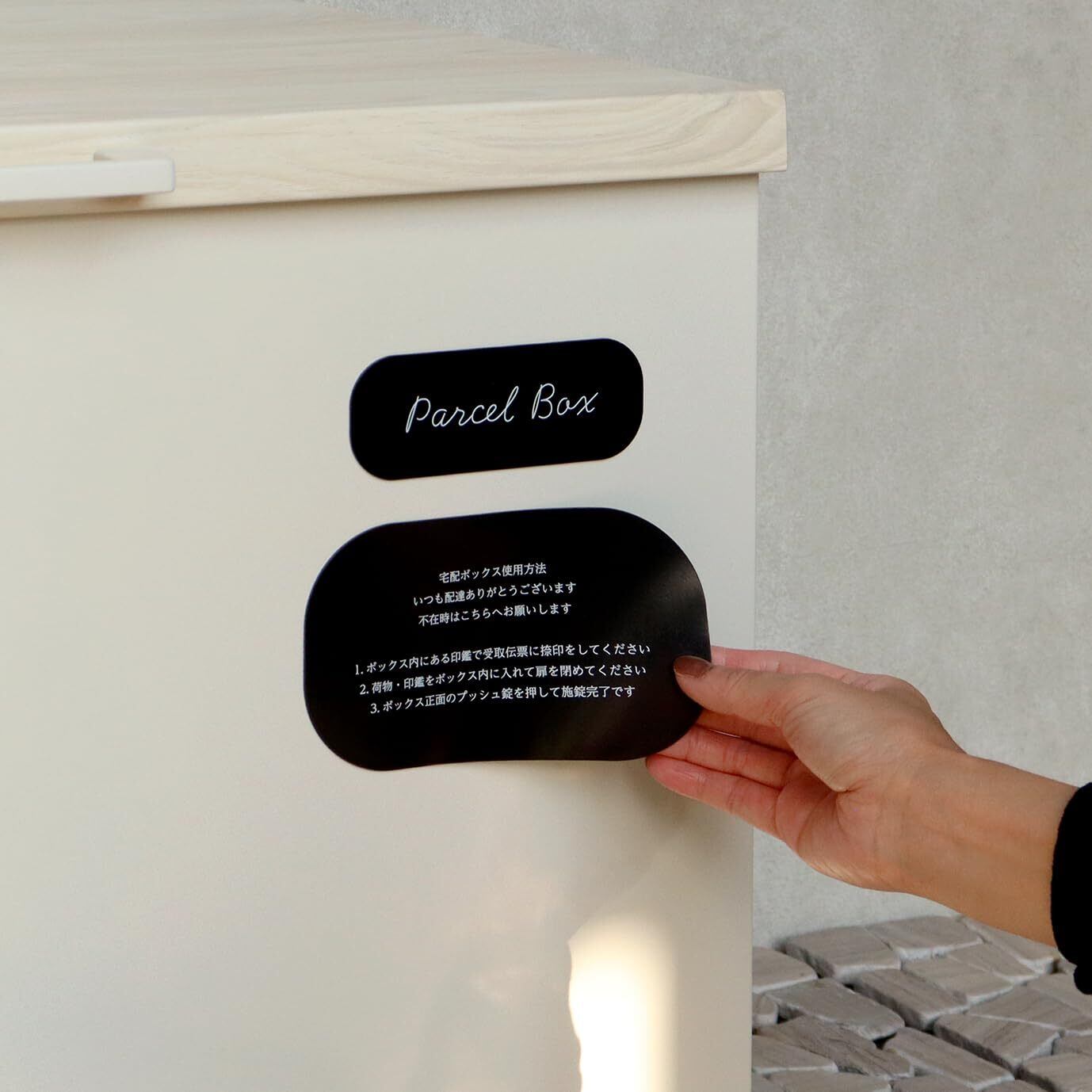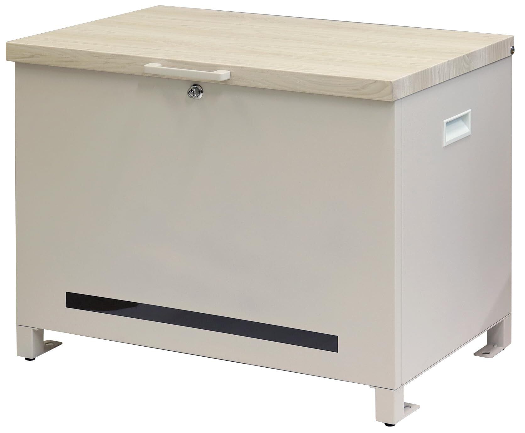 ベンチとしても使用可能な宅配ボックスになります(天面耐荷重約80Kg)鍵は、プッシュキーで簡単に鍵の開閉が可能で、防犯面にも安心です。また、スペアキーが1本付属しております。鍵は内側から閉じ込め防止レバーで解錠可能となります。万が一、宅配ボックス内に閉じ込められても安心です。商品の左右側面にハンドルが付いており、持ち運び時に便利です。商品の正面下部にスリット窓付きで、扉を開けなくても荷物の確認が可能です。収納ボックスとしてだけでなく、子供の遊び道具、アウトドア用品、灯油缶、洗車用品、ごみの保管など、多用途でのご使用が可能な商品です。取出口サイズが約W60.4×D36.2×H43.7cmと非常に広く、大きな荷物や同時に複数の荷物の配達が可能な宅配ボックスです。キー、アンカーボルト、キーフック付印鑑ケース、宅配業者用の配達マニュアルが付属しており、お客様で追加でご用意頂くものは特に必要なく、すぐにご使用頂けます。商品の天面部は木目調仕上げで、特徴のあるデザインとなっております。カラーは、濃いグレーのダークグレーとブラウン木目の組み合わせと、お家の外壁に合わせやすいグレージュ色とホワイト木目の組み合わせからお選び頂けます。「本体」と「取っ手パーツ」、「脚パーツ」のみをボルトで固定する簡易組立の商品となります。ガルバナイズド処理を施しているため、錆びの発生がしにくい仕様となっております。防水塗装は施しておりませんので、軒下や屋根がある場所への設置を推奨致します。■サイズW65×D43.7×H50.7cm■重量約12.7Kg■材質金属(鉄)■組立品(本体完成品・脚、取っ手のみ取付)