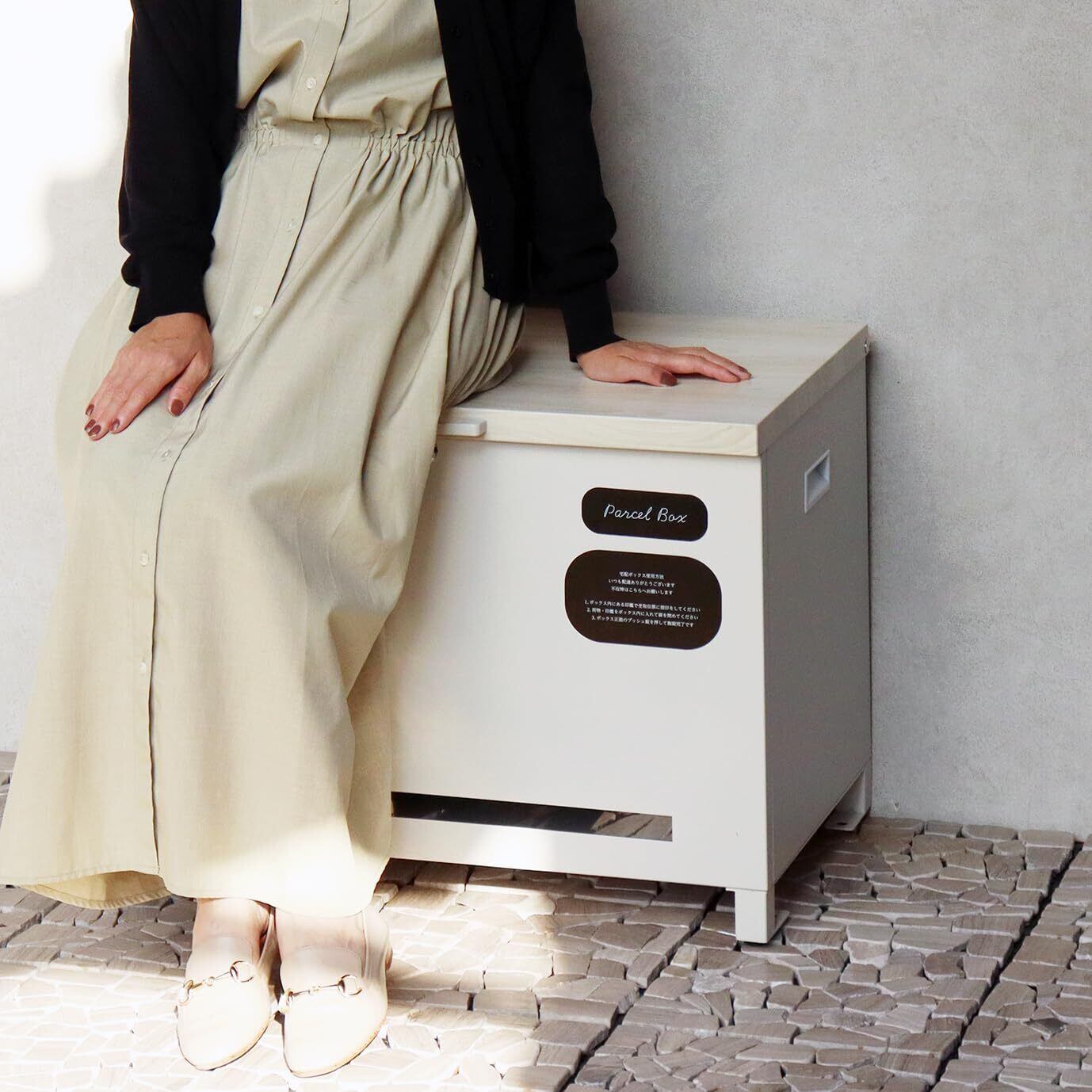 MOJYU ベンチ収納宅配ボックス Amato グレージュ/ホワイト木目 PBX-102 おしゃれ 宅配ボックス 北欧風 鍵付き 自立 玄関 家庭用 大容量 プッシュキー メールボックス ベンチ ストッカー | KSショップ