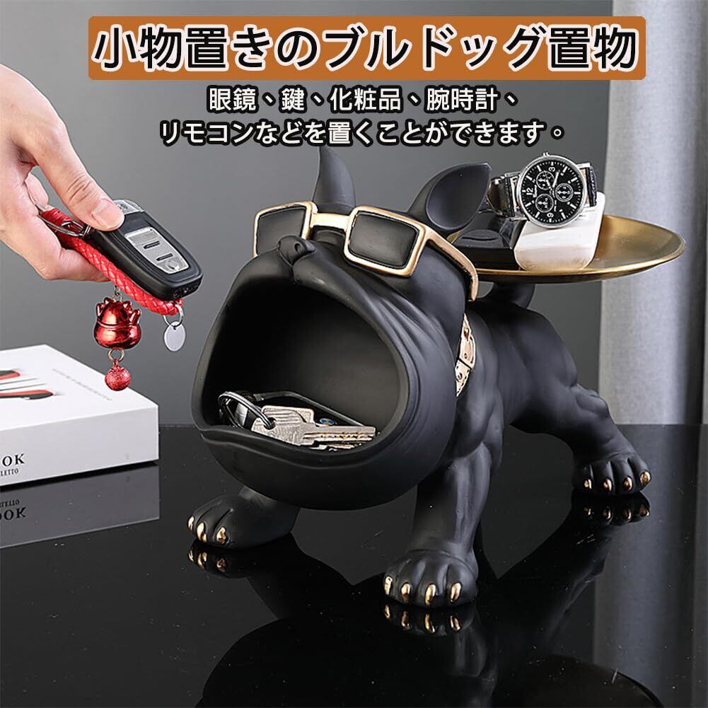 chookey 鍵収納ホルダー 犬 ブルドッグ 鍵置 玄関 小物置き (ブラック)