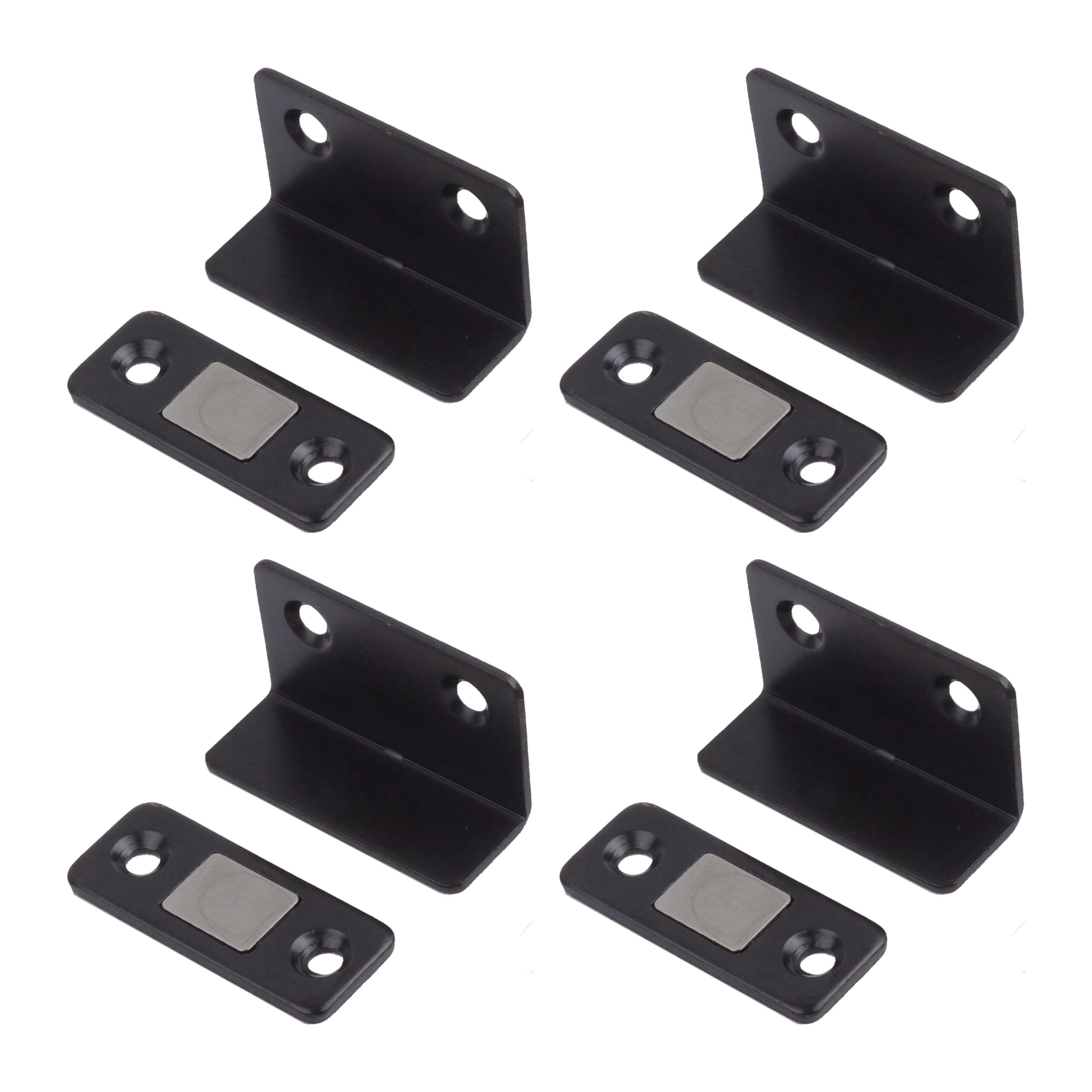 prendre L字型 マグネットキャッチ 4個セット 磁気キャッチ ステンレス 薄型 強力 ドア止め金具 家具扉 戸棚 ドアキャッチ DIY 引き戸 両面テープ ネジ (ブラック) PR-LMAG4-BK