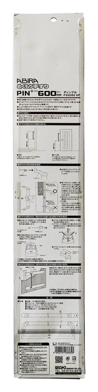 WAKI ABIRA ぬくもり手すりPIN+ プラス ディンプルタイプ 600mm 直径32mm ハニークリア