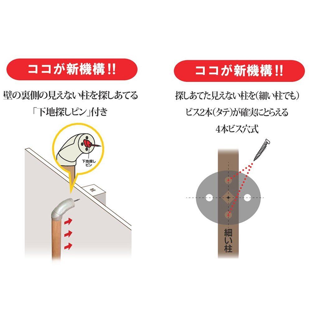 ココが新機構! ! 壁の裏側の見えない柱を探すことができる「下地探しピン」付き手すりです! !