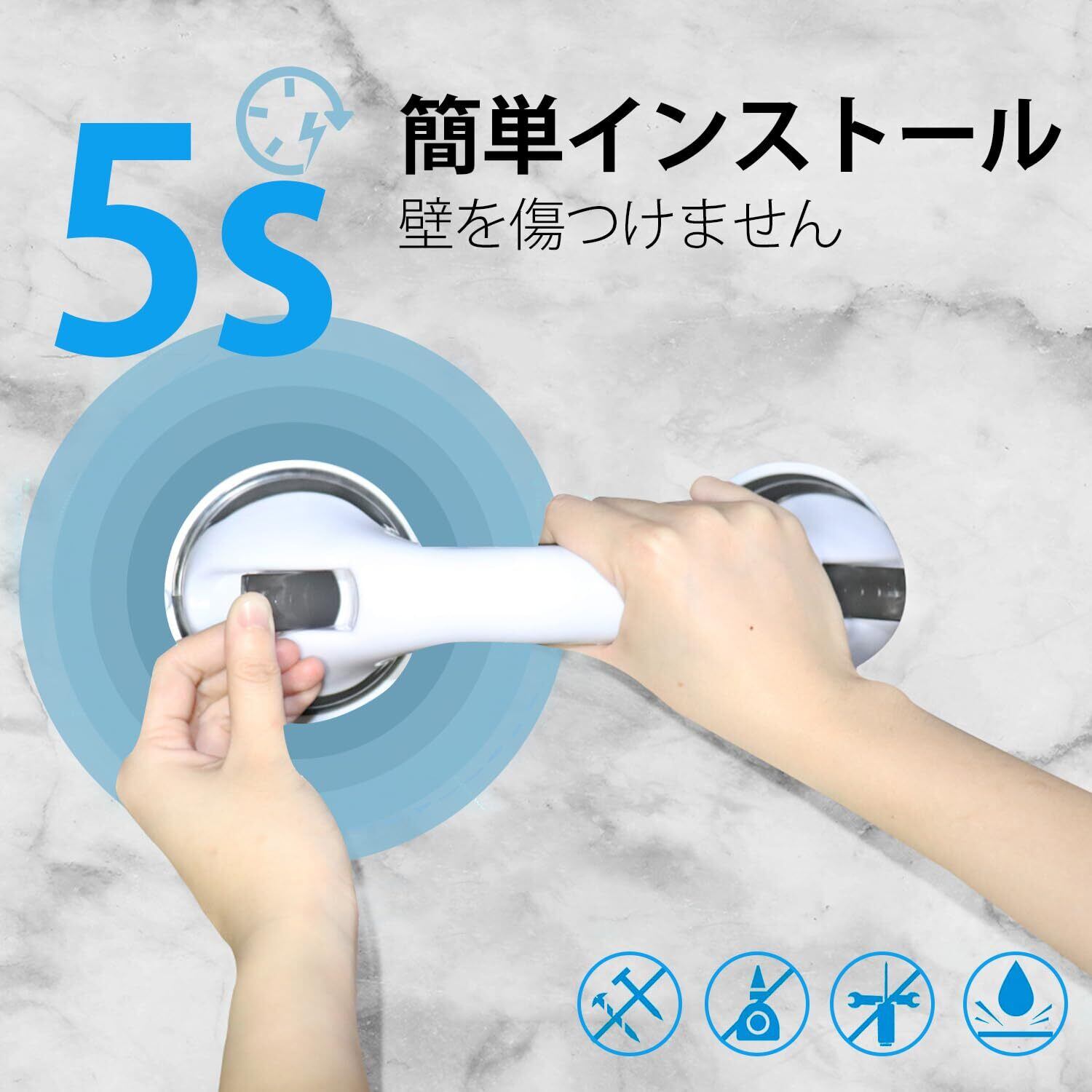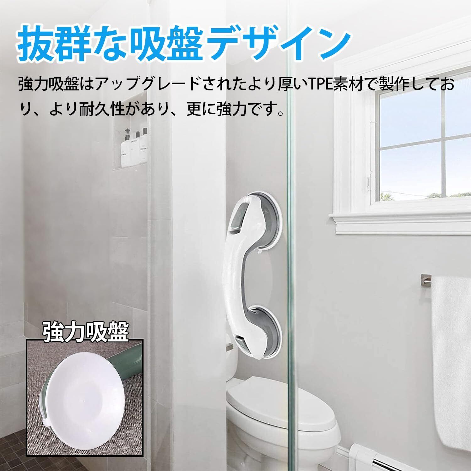 【抜群な吸盤デザイン】強力吸盤はアップグレードされたより厚いABS素材で製作しており、より耐久性があり、更に強力です。超耐荷重で、壁に長く掛けられ、より強力な吸引力を備えています。手すりの取っ手が広く、持ちやすくなっています。 広いグリップエリアは強い吸引力をできます。