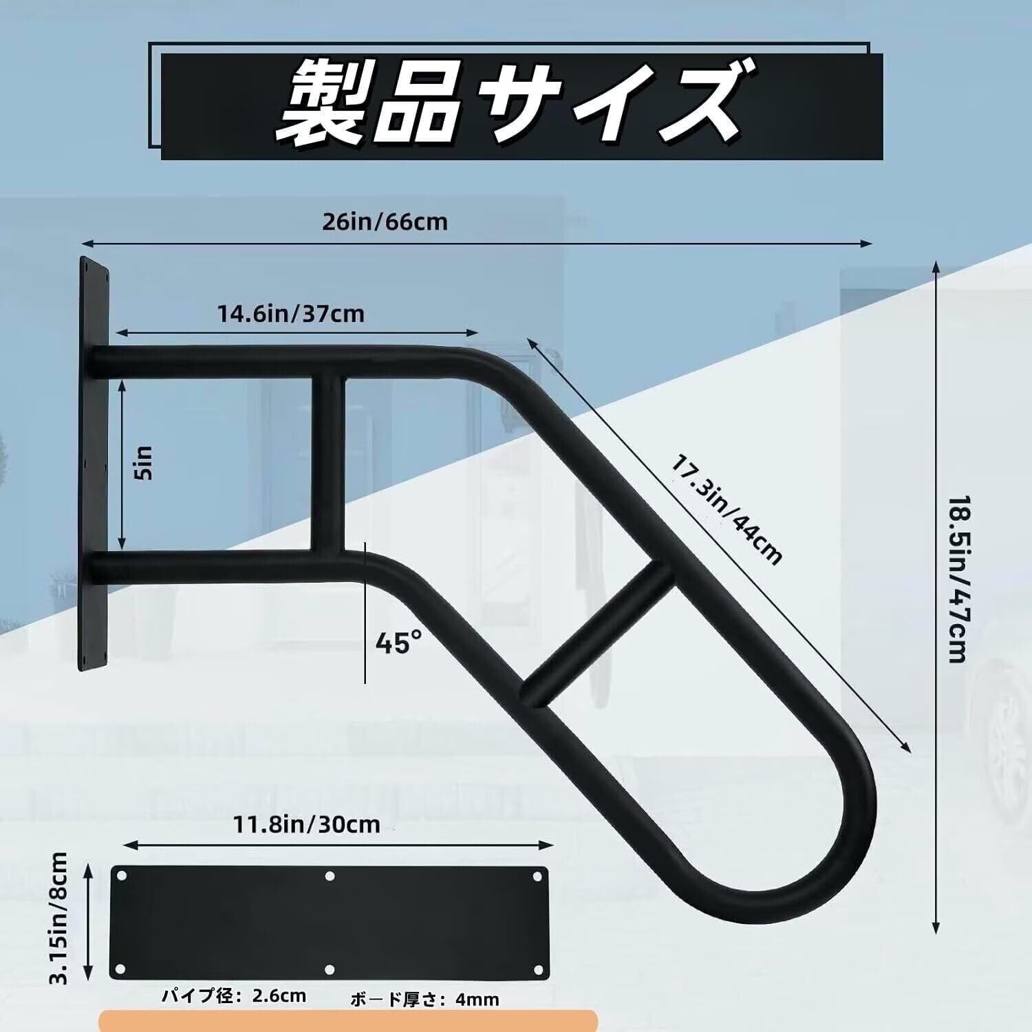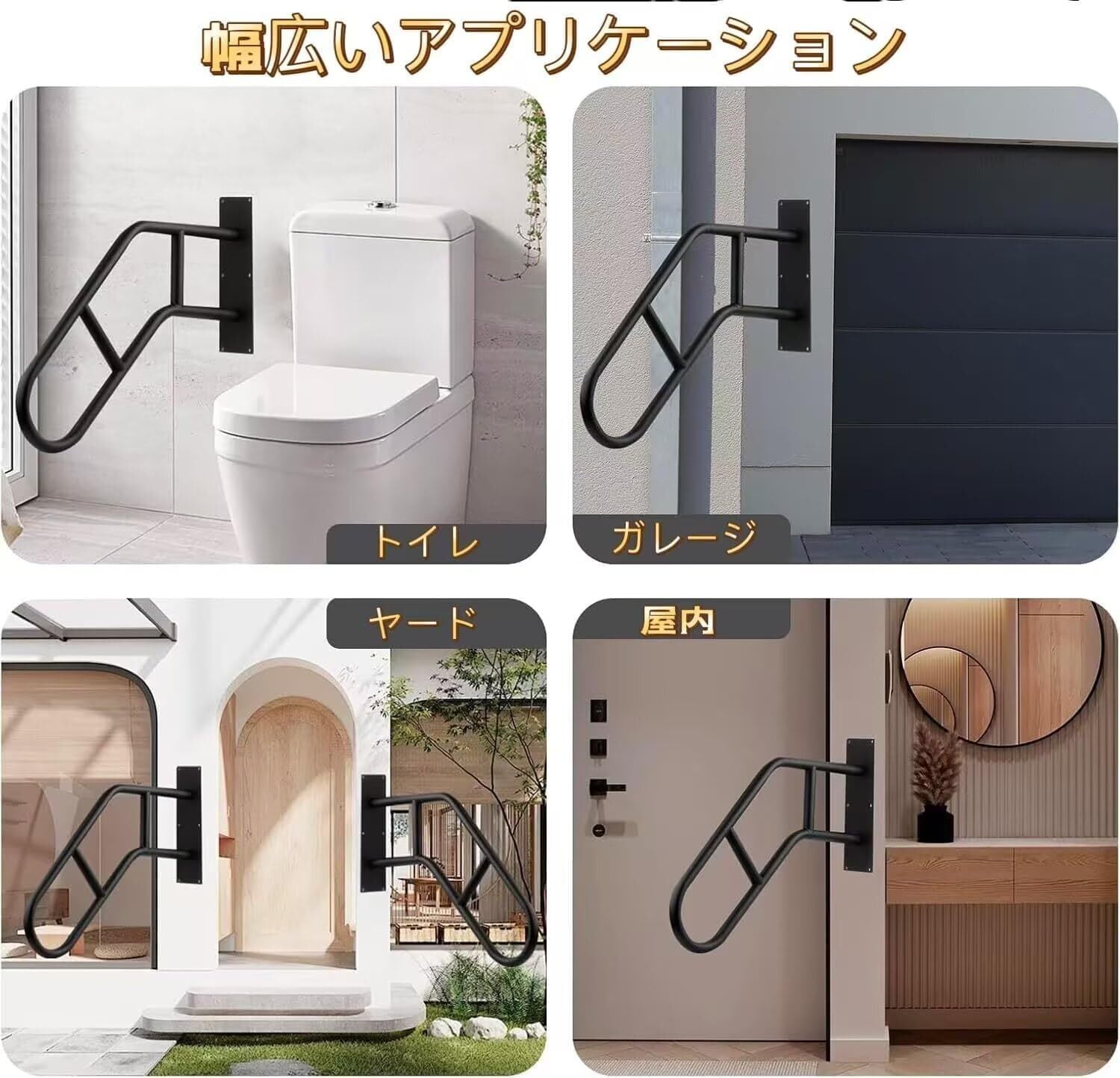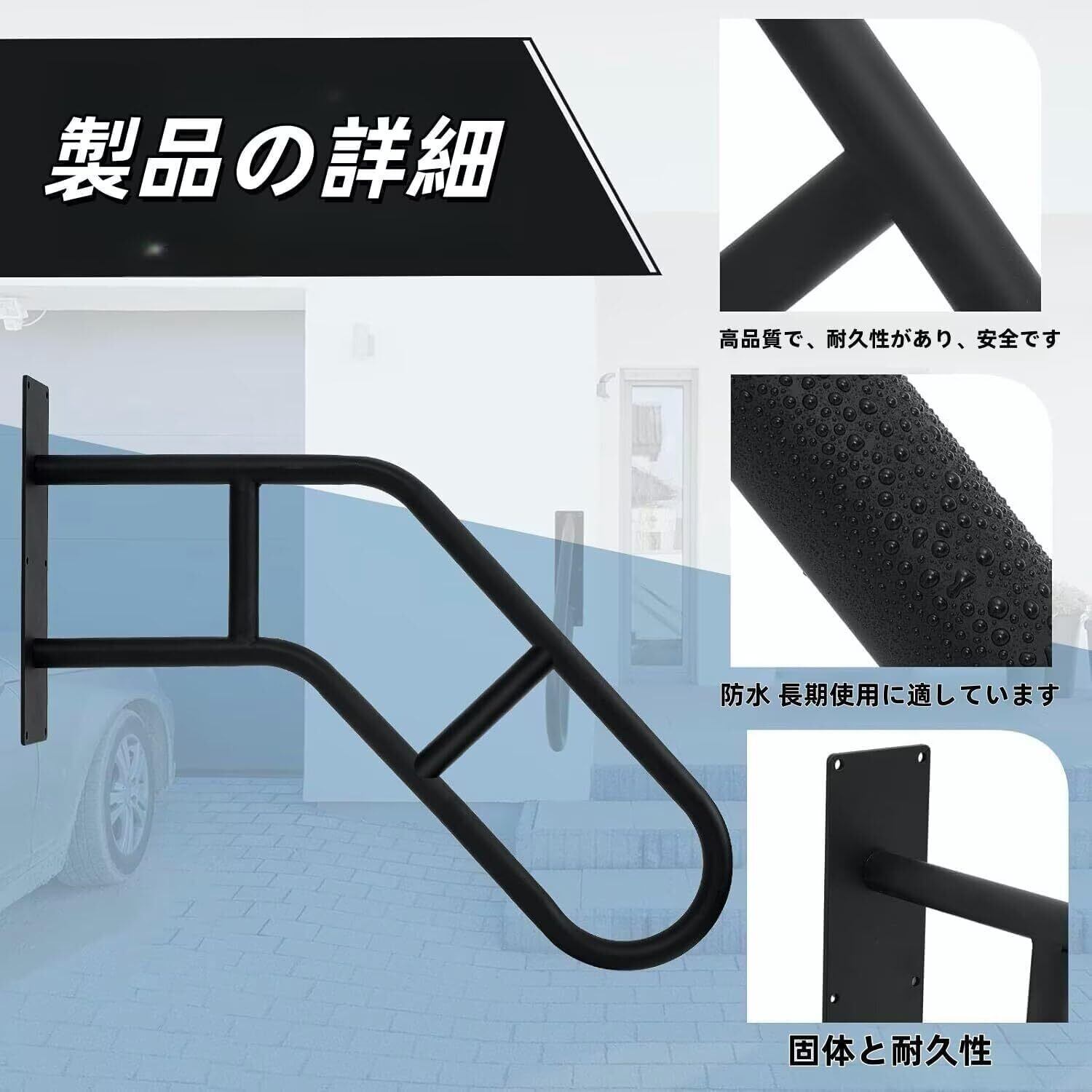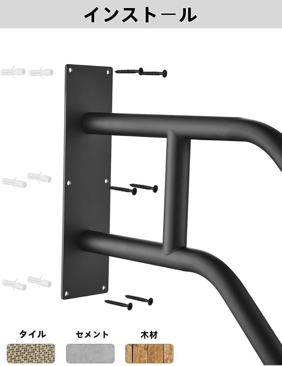 TUIYIDUO 強化版 ノンスリップ手すり 屋外手すり1-3ステップ 66cm 壁取り付け 階段 安全ハンドル ガレージ ベランダ、庭用 日本語説明書付き(黒い)