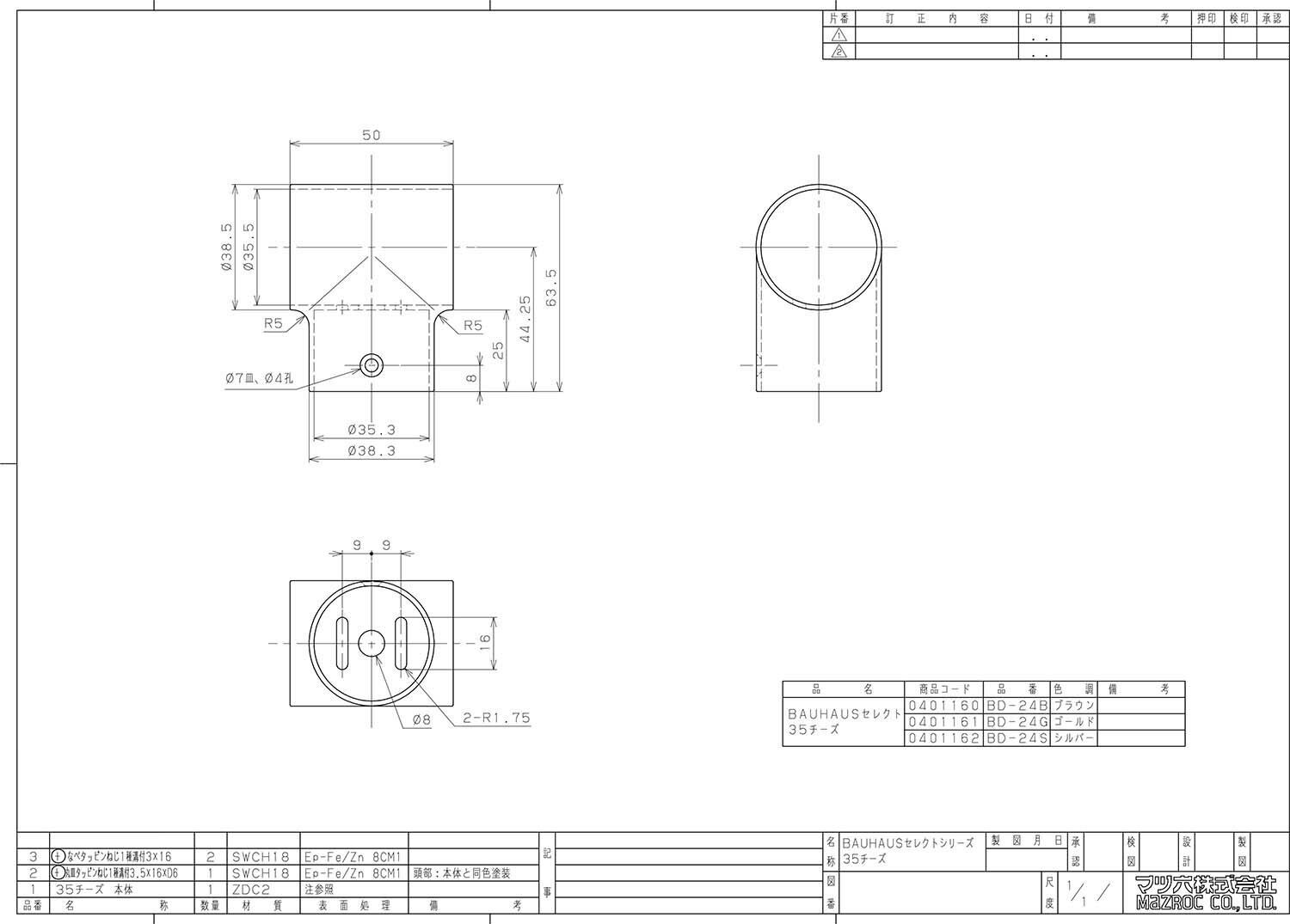 マツ六(Mazroc) 手すり部材 BAUHAUS セレクト 35チーズ BD-24G ゴールド