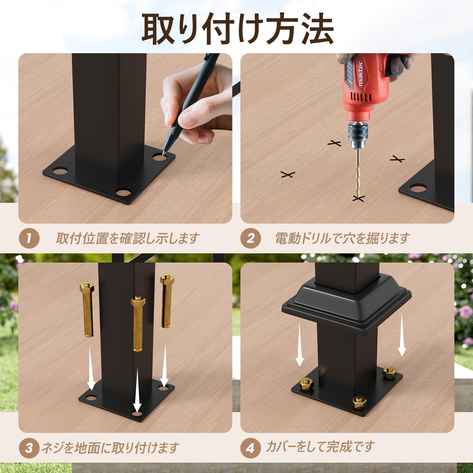 【複数の設置場所に対応】取り付け用のねじが付属しているため、木、レンガ、コンクリート、大理石などさまざまな床材にしっかりと取り付けられます。必要な場所でしっかりとしたサポートを提供します。