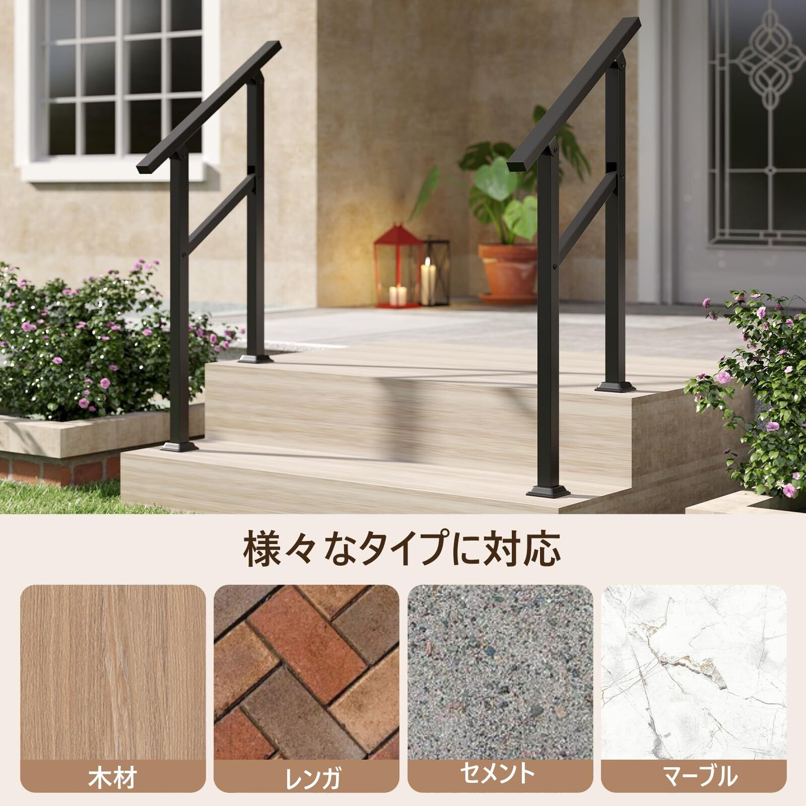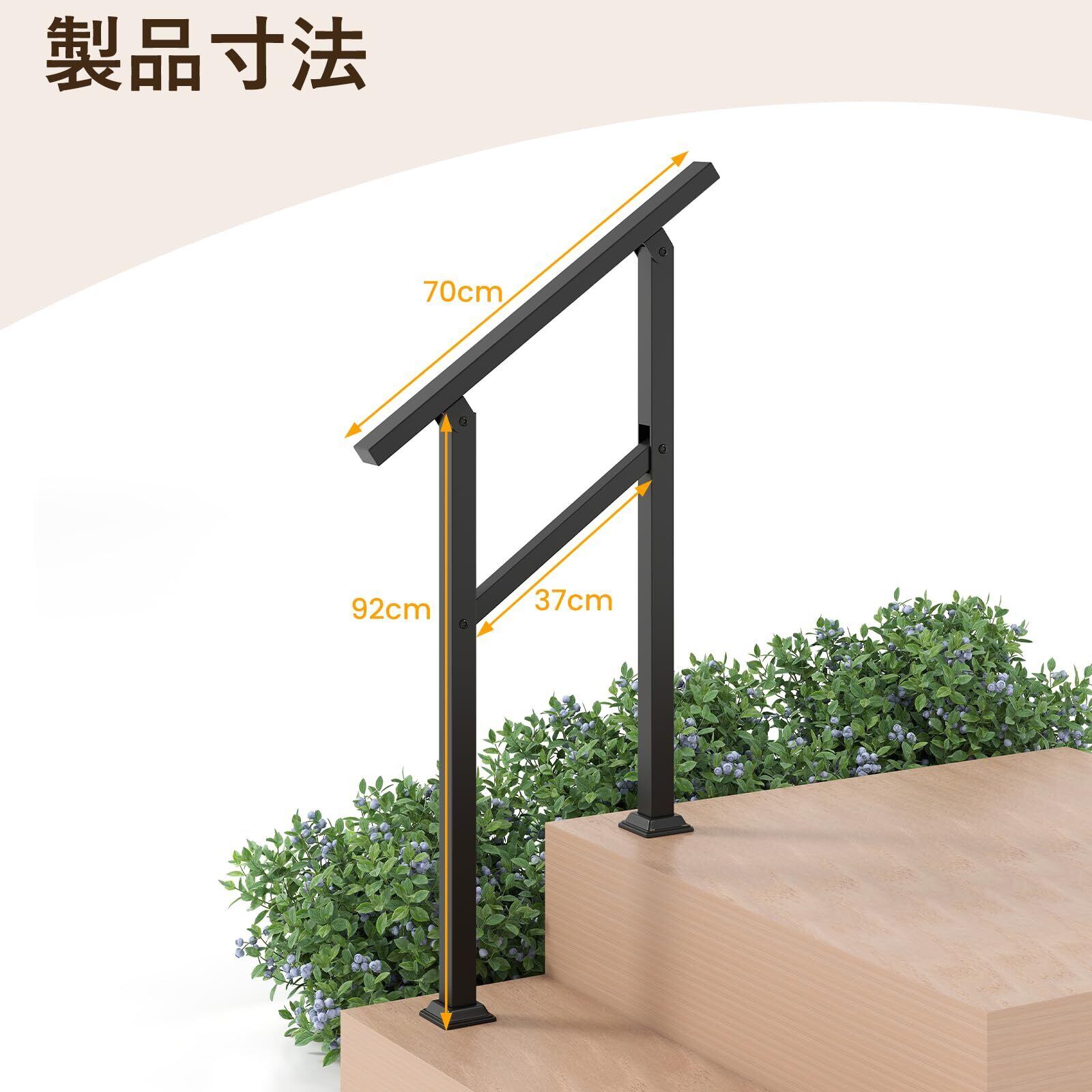【安全性と保護を提供】この頑丈な手すりは、最適な安全性を確保し、庭の階段、デッキの傾斜、玄関アプローチなど多様な場所に設置できます。高齢者やご年配の方など、幅広い方に適しています。