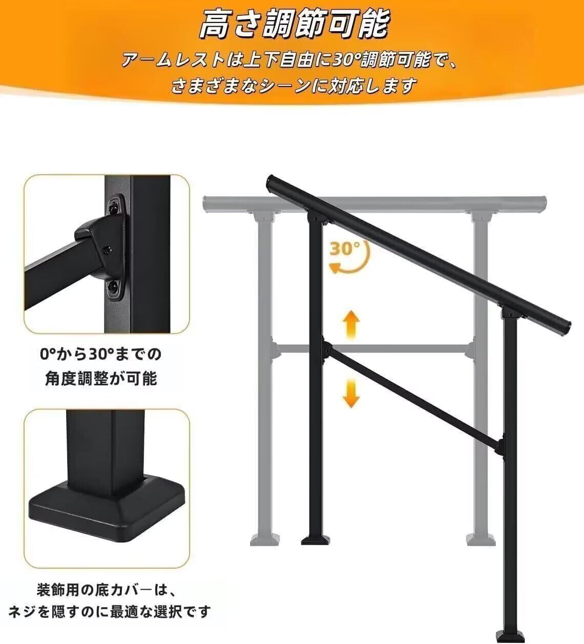 【角度調節可能なアームレスト】手すり 屋外は楕円形のデザインで、人体工学に基づいており、握りやすく、長時間の使用に適している。15~55度のさまざまな傾斜に適応するように事前に決定できます。 さまざまな階段での使用に適しています、どのような環境でも最適な支援と保護を提供する。