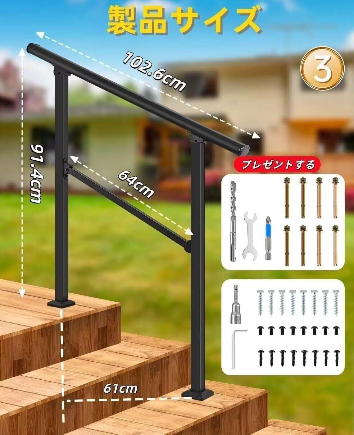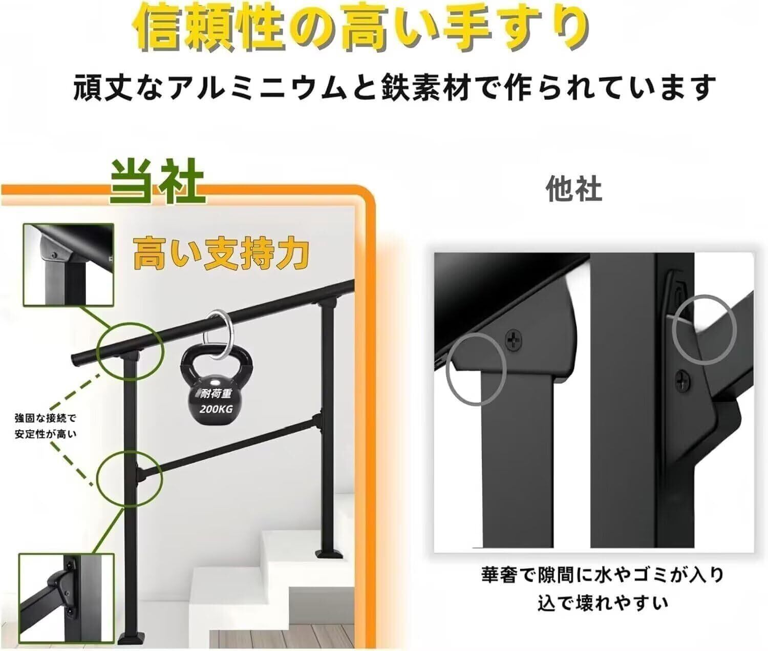 【高品質の手すり】エレガントで高品質の手すり、高炭素鋼素材を使用し、非常に高い耐久性と安定性をする。表面は二重塗装処理されており、優れた防錆・防食性能を持ち、清掃やメンテナンスも容易だ。