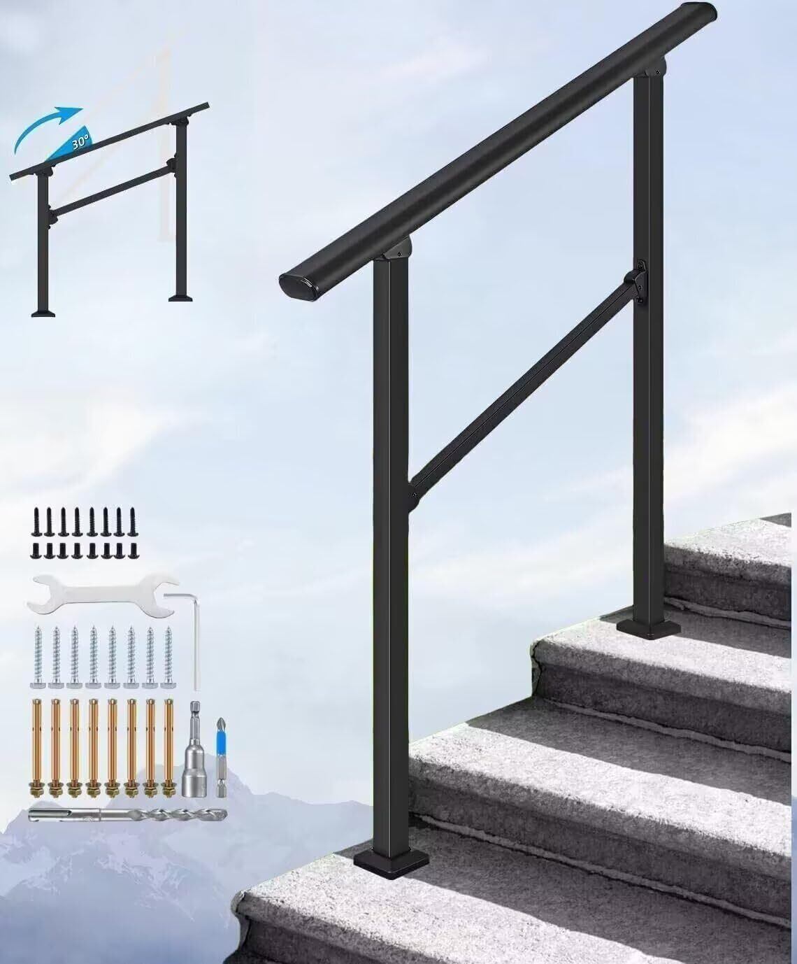 TUIYIDUO 屋外 階段 手摺り DIY 手すり 高炭素鋼 階段手摺 15-55°角度調整可能 手すり 屋外 防錆 安全 滑り止め 階段手摺 高齢者、妊婦、子供、リハビリテーション患者 簡単な取り付け ブラック日本語説明書付き(SJLTFS-04)