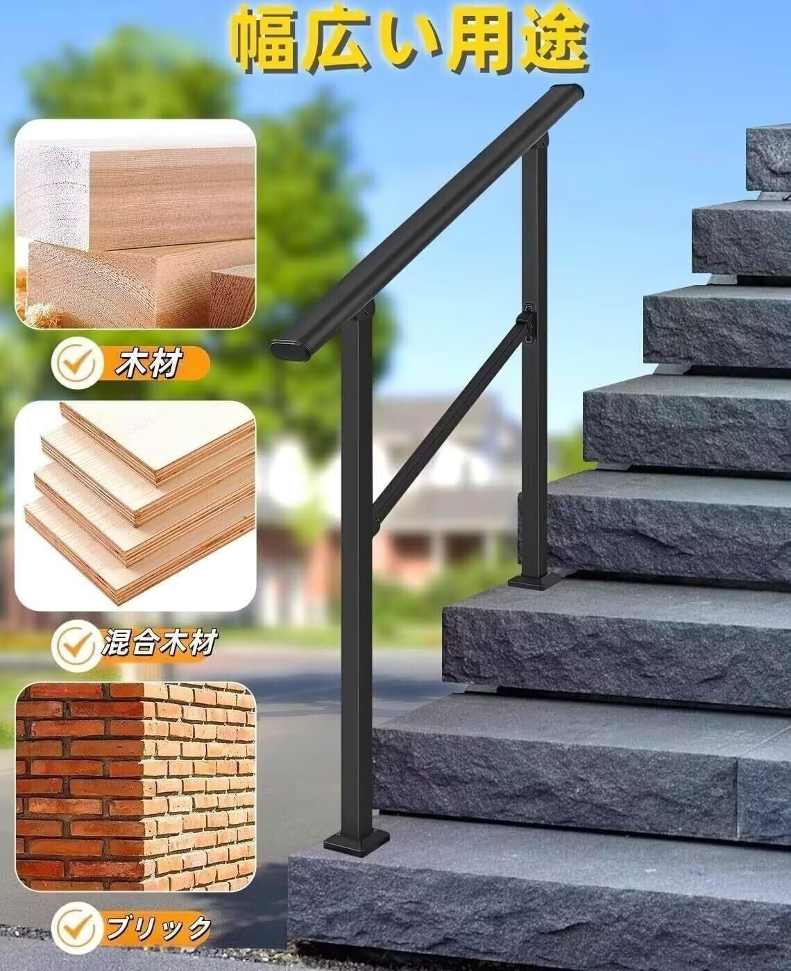 TUIYIDUO 屋外 階段 手摺り DIY 手すり 高炭素鋼 階段手摺 15-55°角度調整可能 手すり 屋外 防錆 安全 滑り止め 階段手摺 高齢者、妊婦、子供、リハビリテーション患者 簡単な取り付け ブラック日本語説明書付き(SJLTFS-04) | KSショップ