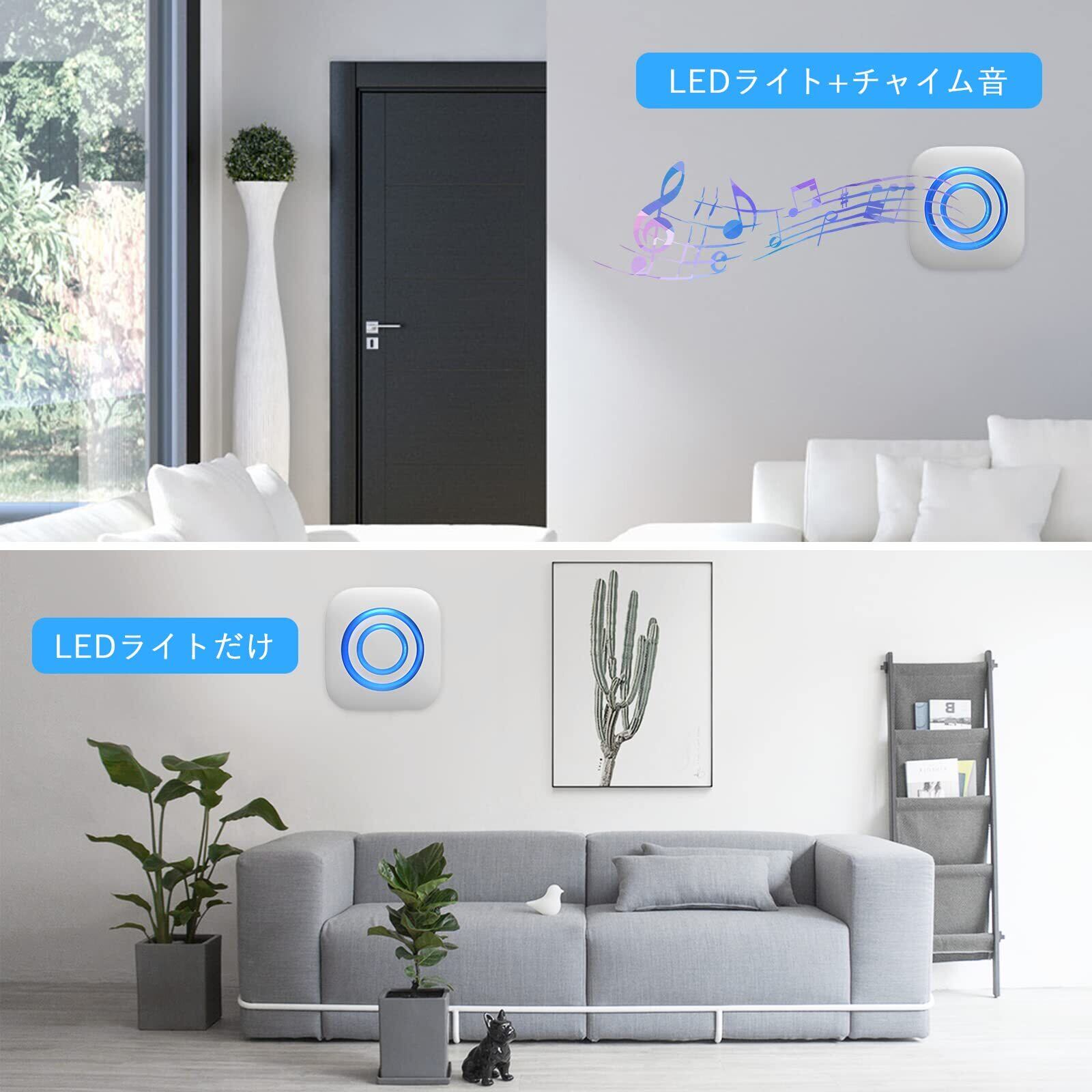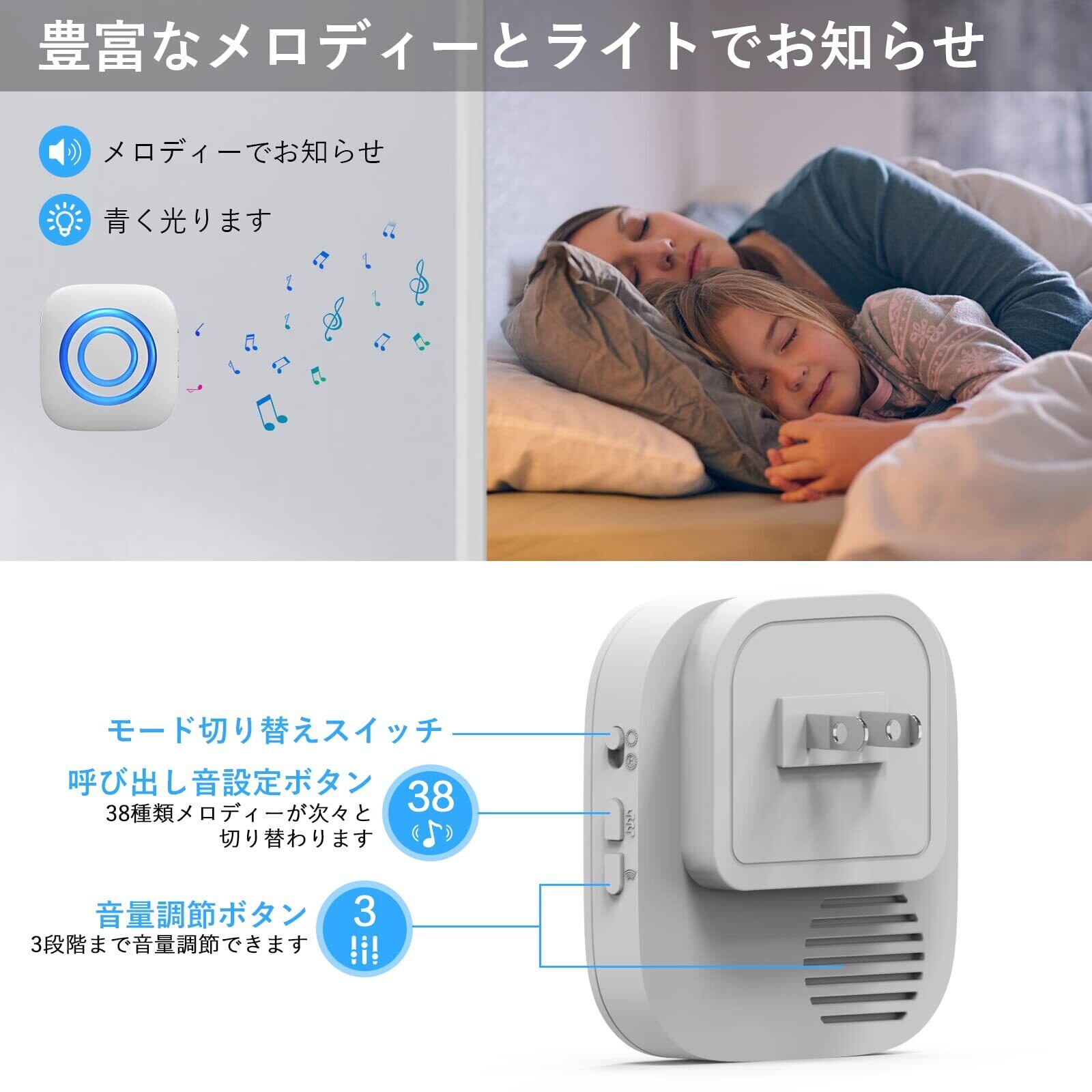 ワイヤレスチャイム 人感センサー チャイム コードレス 呼び鈴 介護 非接触 ドアチャイム 音と光 ブザー3段階音量調節 38種類呼び出し音 飲食店 店舗 玄関 お年寄り