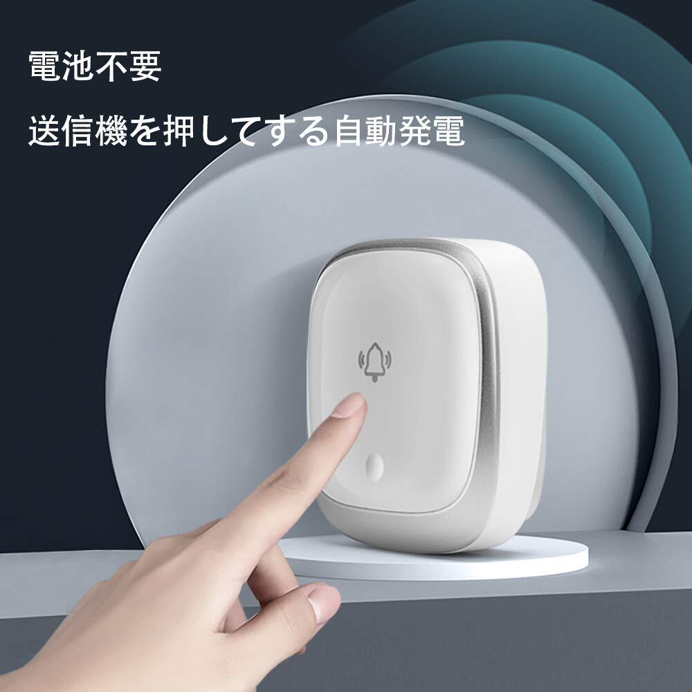 KULUSUPA ワイヤレスチャイム 玄関チャイム 電池不要 自動発電 音と光で呼び出しチャイムセット 7色led 4段階音量調節38曲選択 防水防塵 介護呼び鈴ドアベル 最高200M無線範囲 送信機1個 受信機2個 | KSショップ