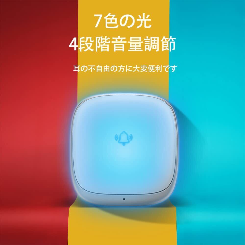 【7色の光と38曲選択可能の音で呼び出し】玄関チャイムの発信機を押せば、呼出し音が鳴ると同時に、7色のLEDランプが点滅してお知らせします。老人か耳の不自由の方に大変便利です。メロディーと38曲からお選びいただけます。受信機の音がない場合で、送信機とリペアリングして解決できます。方法:受信機の音量ボタンを長押し続き送信機を押してペアできます。あるいは直接店のカスタマに連絡していいです。