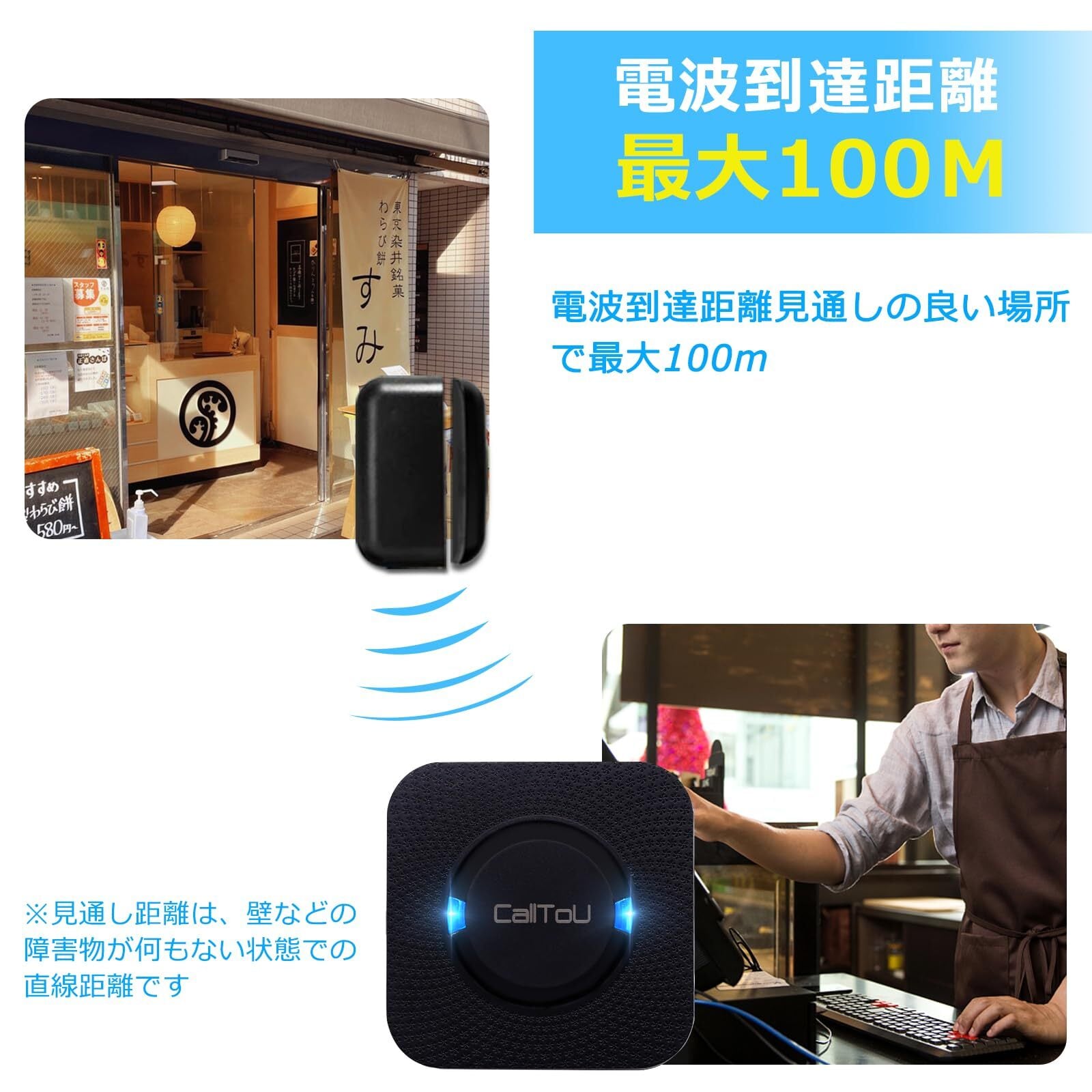 CallToU ドアベルセンサー 開閉センサー 自動ドア磁気 ドアと窓の盗難防止製品 玄関/ポーチの侵入検知 家庭/ガレージ/小売/アパート/オフィスでの使用 1受信機と1磁石センサー