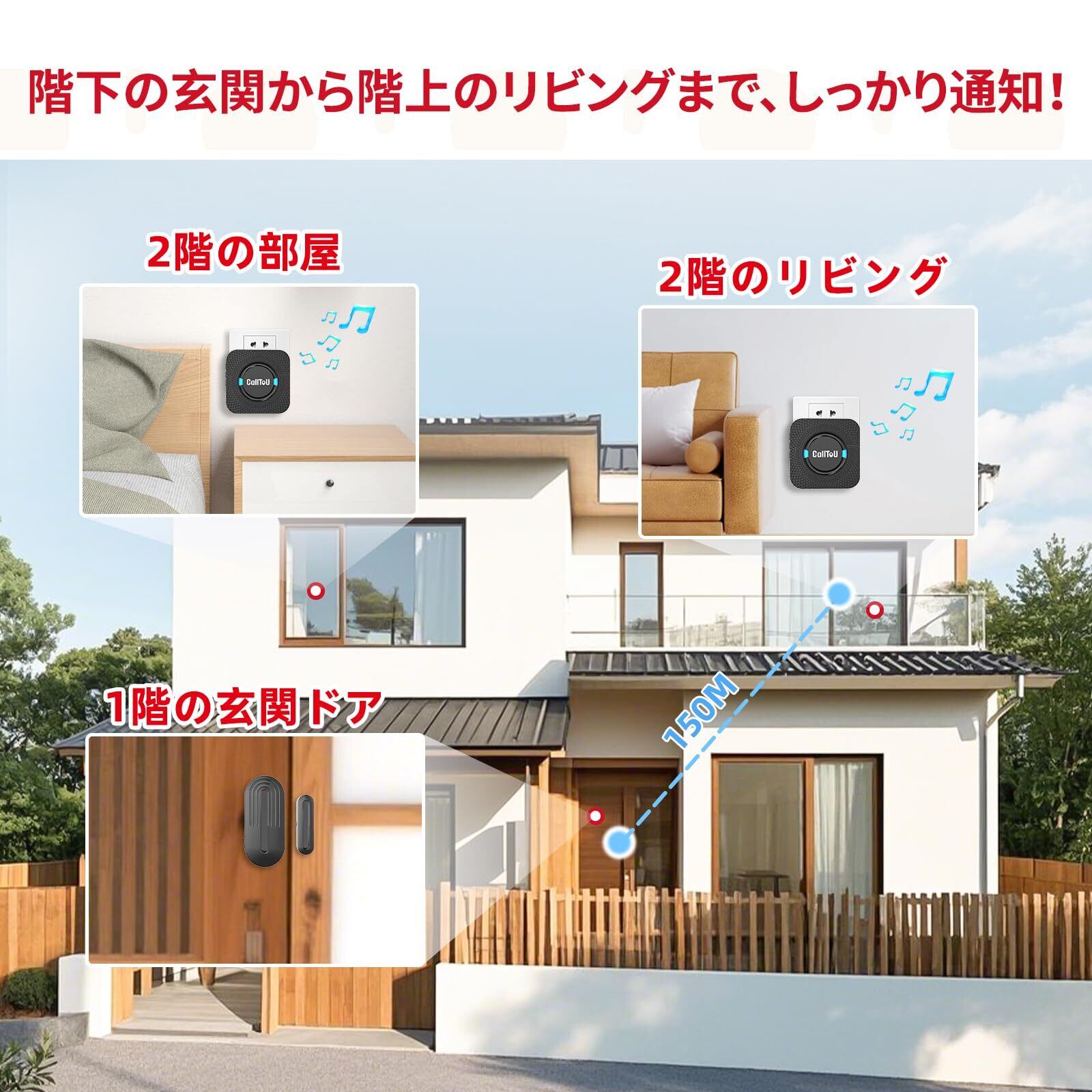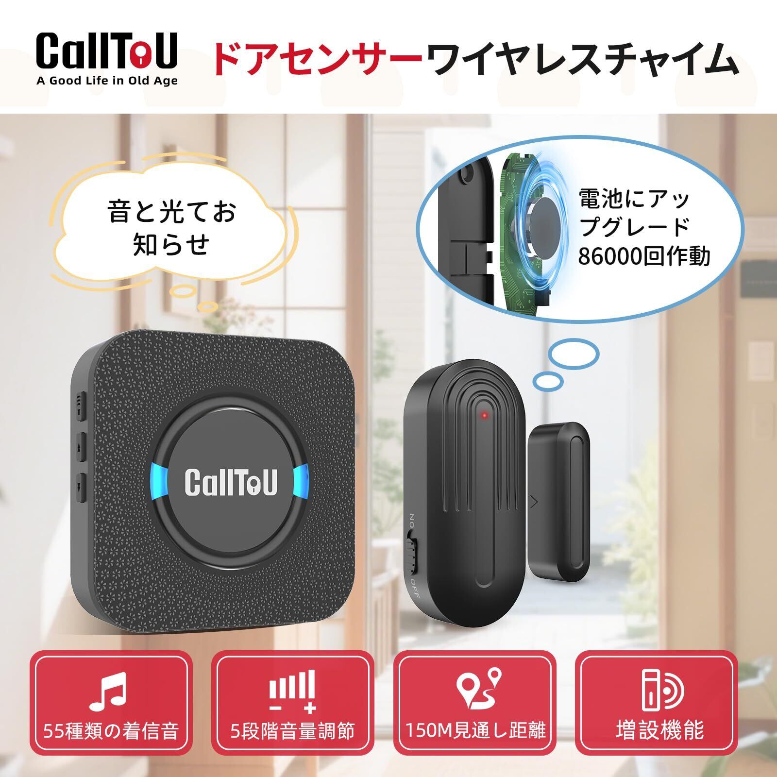 CallToU ドアセンサー ワイヤレス チャイム ドアベル ドア開閉センサー セット ドアチャイム 防犯アラーム 5段階音量調整 55曲選択 150m通信距離 玄関 部屋 事務所 店舗 自動ドア対応 ドア開閉チャイム 1AC式受信機と2電池式マグネットセンサー