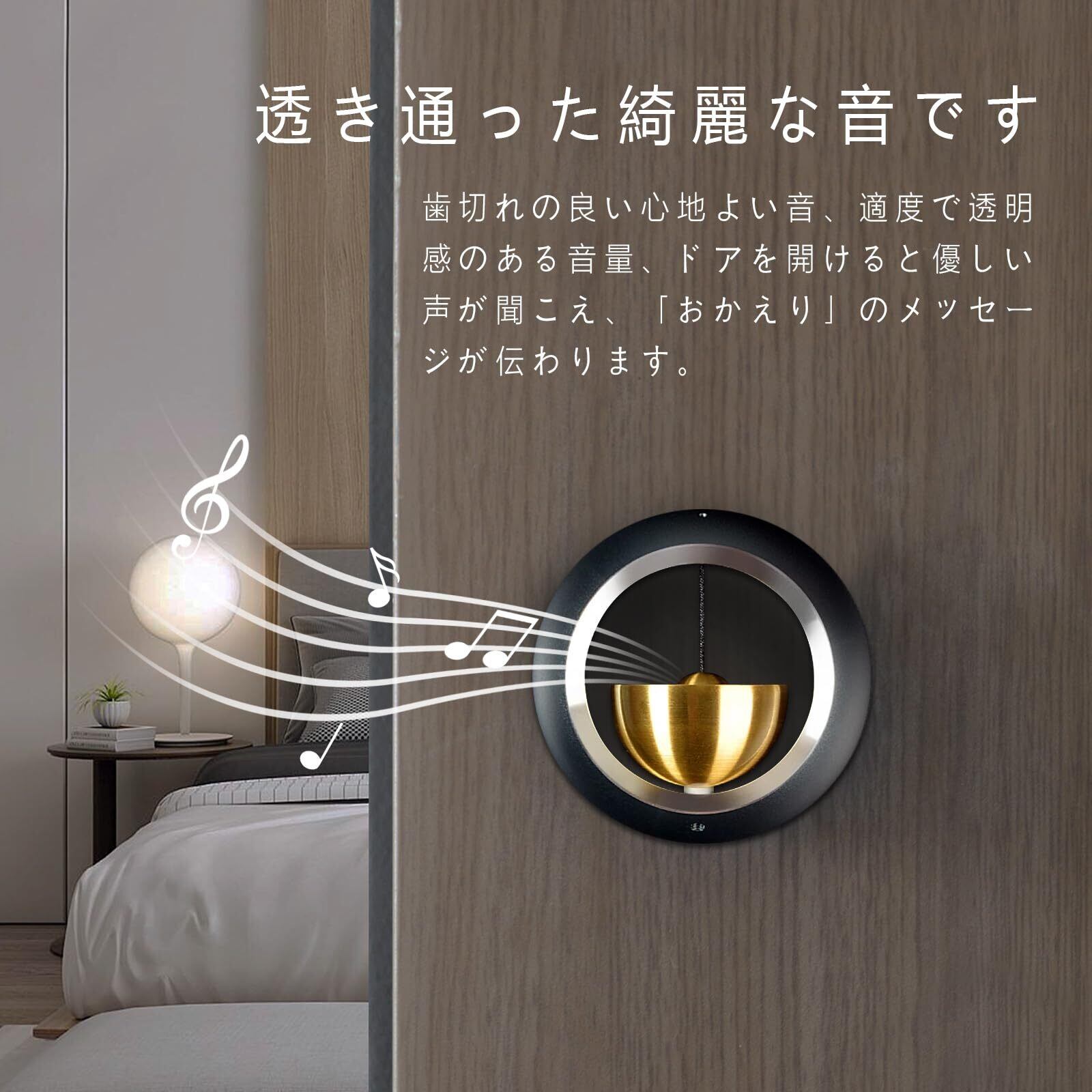 【透き通った綺麗な音です】ドアを開けるたびに、優しい声が聞こえます。真鍮素材の組み合わせにより、このベルの音色は歯切れが良く心地よく、「おかえり」のメッセージも伝えることができます。注意:ドアの開閉方法や力の大きさによっては、ドアベルが正常に応答しない可能性があります。