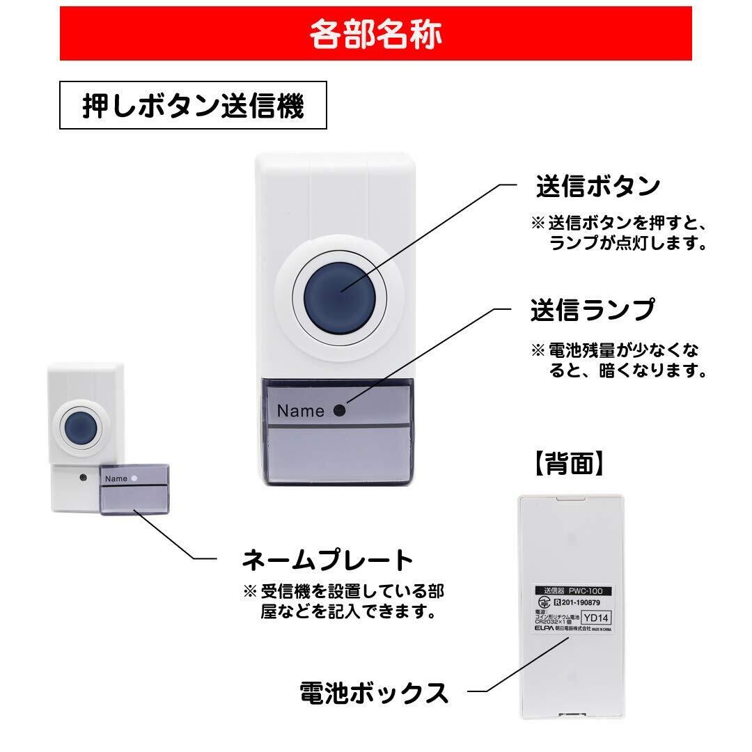 エルパ(ELPA) ポータブルワイヤレスチャイム 介護 呼び出し 無線 配線不要 PWC-100