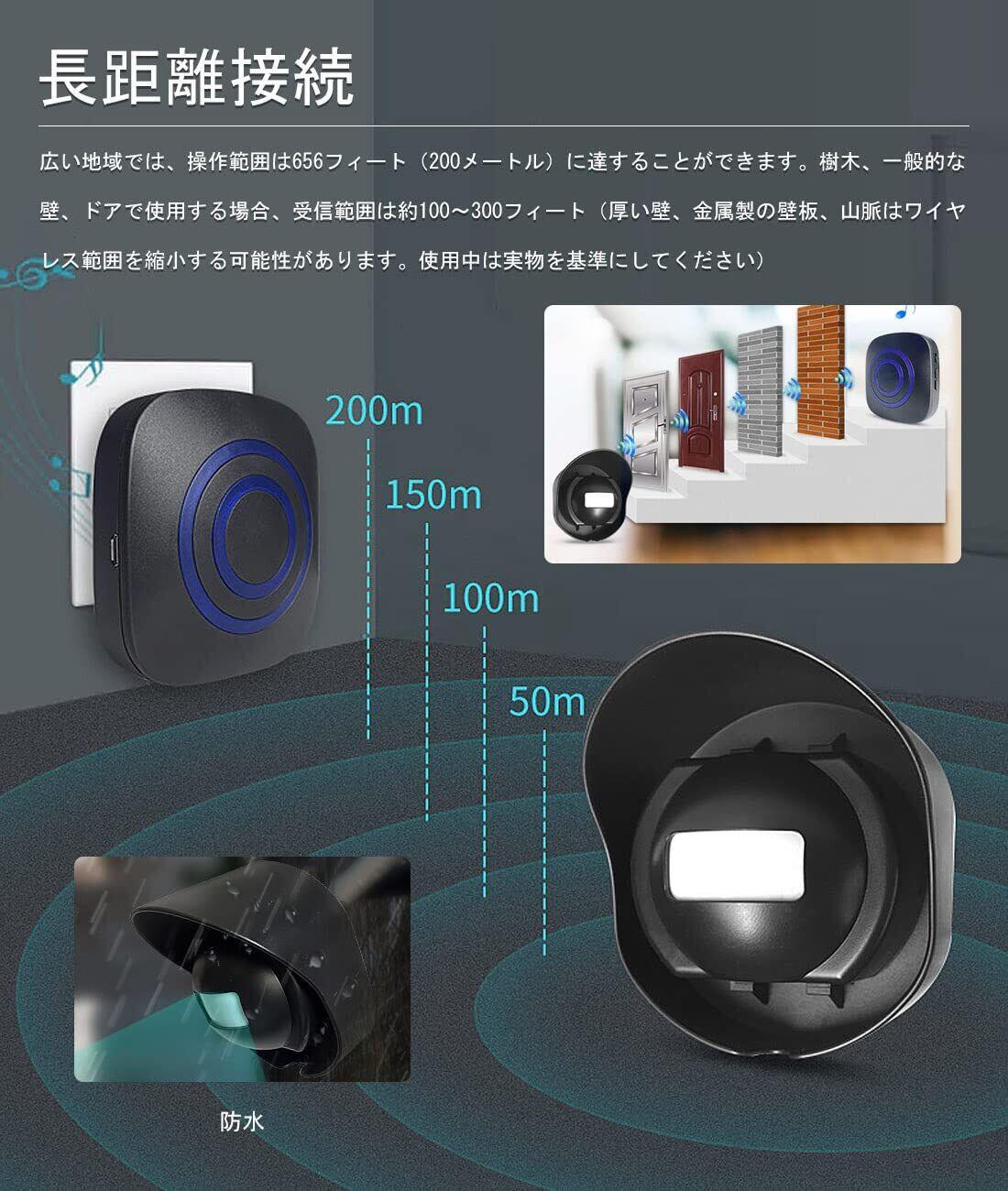 【幅広い適用範囲】受信機と送信機の間200メートルまでの範囲。ワイヤレスチャイムは家、オフィス、ホテル、ショップなどに最適です。ご自宅や店舗、事務所に倉庫などの防犯対策に持って来いのアイテムです。チャイムと赤外線が接続されていない場合は、再マッチングする必要があります。