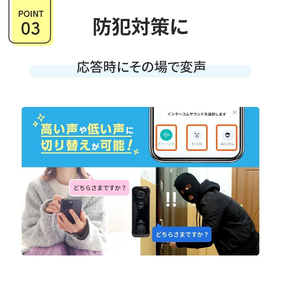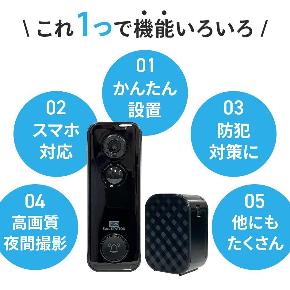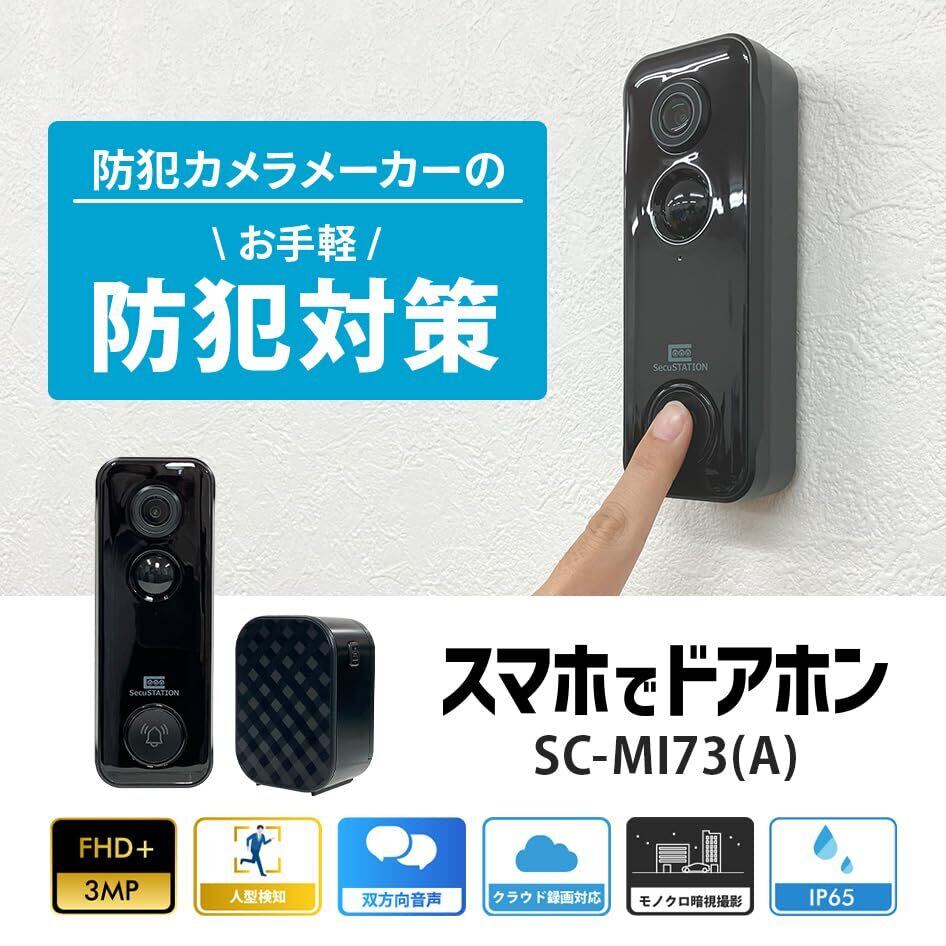 SecuSTATION スマホでドアホン インターホン ワイヤレス 300万画素 工事不要 IP65 防塵防水 スマホ 対応 ドアベル カメラ付き 録画 防犯 屋外 通話 暗視 玄関 wifi対応 チャイム テレビドアホン バッテリー 充電式 電源不要 日本語対応 防犯設備士推薦 国内メーカー SC-MI73(A)
