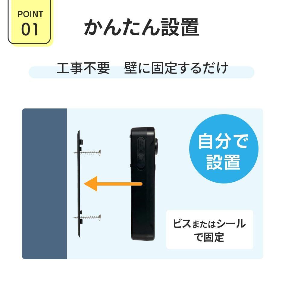 SecuSTATION スマホでドアホン インターホン ワイヤレス 300万画素 工事不要 IP65 防塵防水 スマホ 対応 ドアベル カメラ付き 録画 防犯 屋外 通話 暗視 玄関 wifi対応 チャイム テレビドアホン バッテリー 充電式 電源不要 日本語対応 防犯設備士推薦 国内メーカー SC-MI73(A) | KSショップ