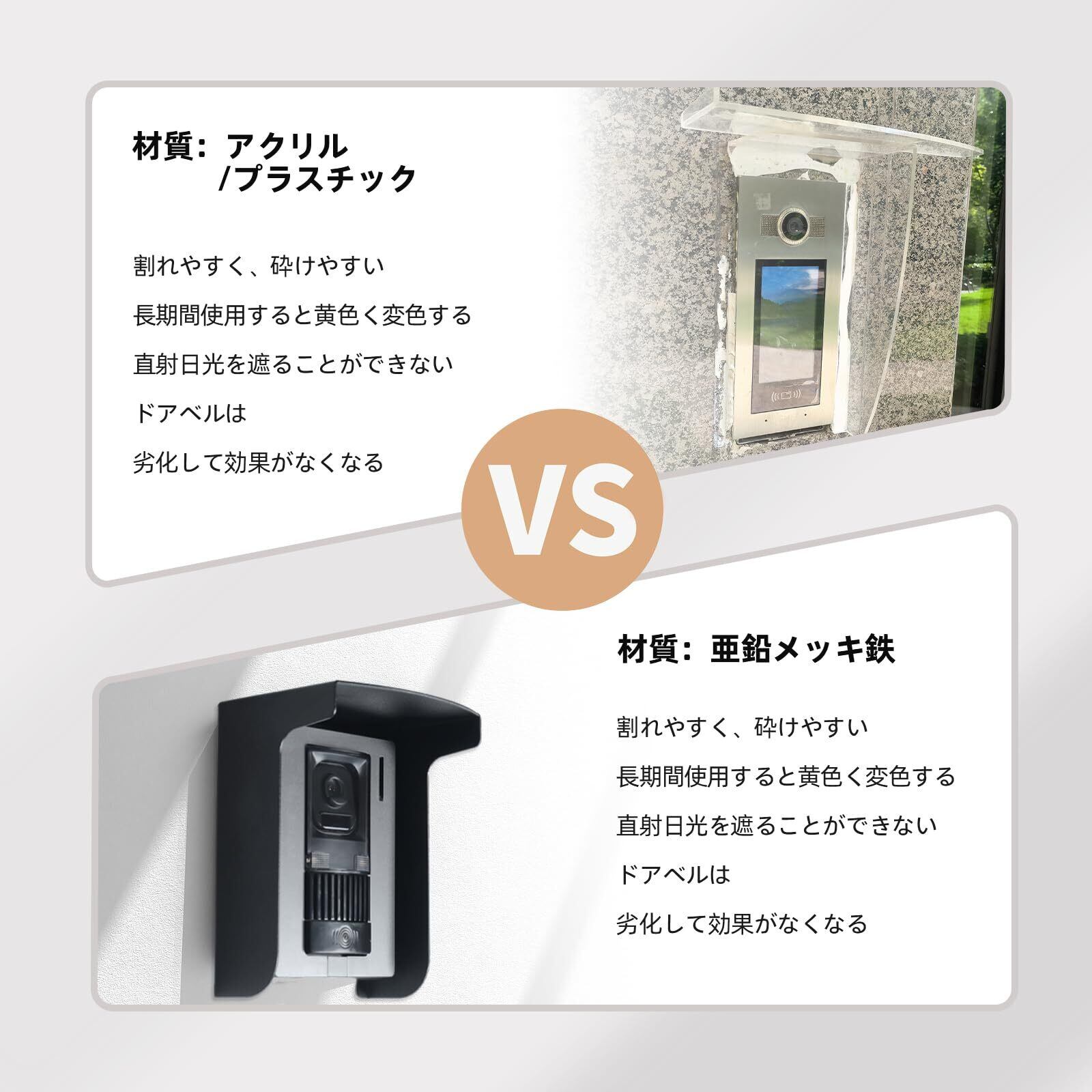 屋外インターホン カバー 玄関ドアホン雨よけ ワイヤレスドアホン日除けカバー 超硬質メタル 取り付けが簡単(ブラック)