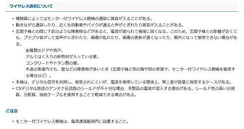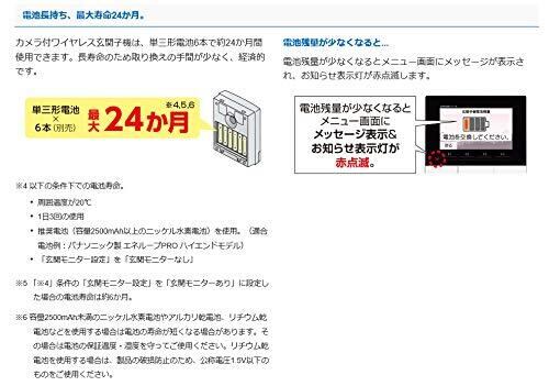 電源電圧 : 親機(WR-1ME) : AC100V 50/60Hz、玄関子機(WR-DA) : 単3形電池×6本(推奨 : ニッケル水素電池容量2500mAh以上)