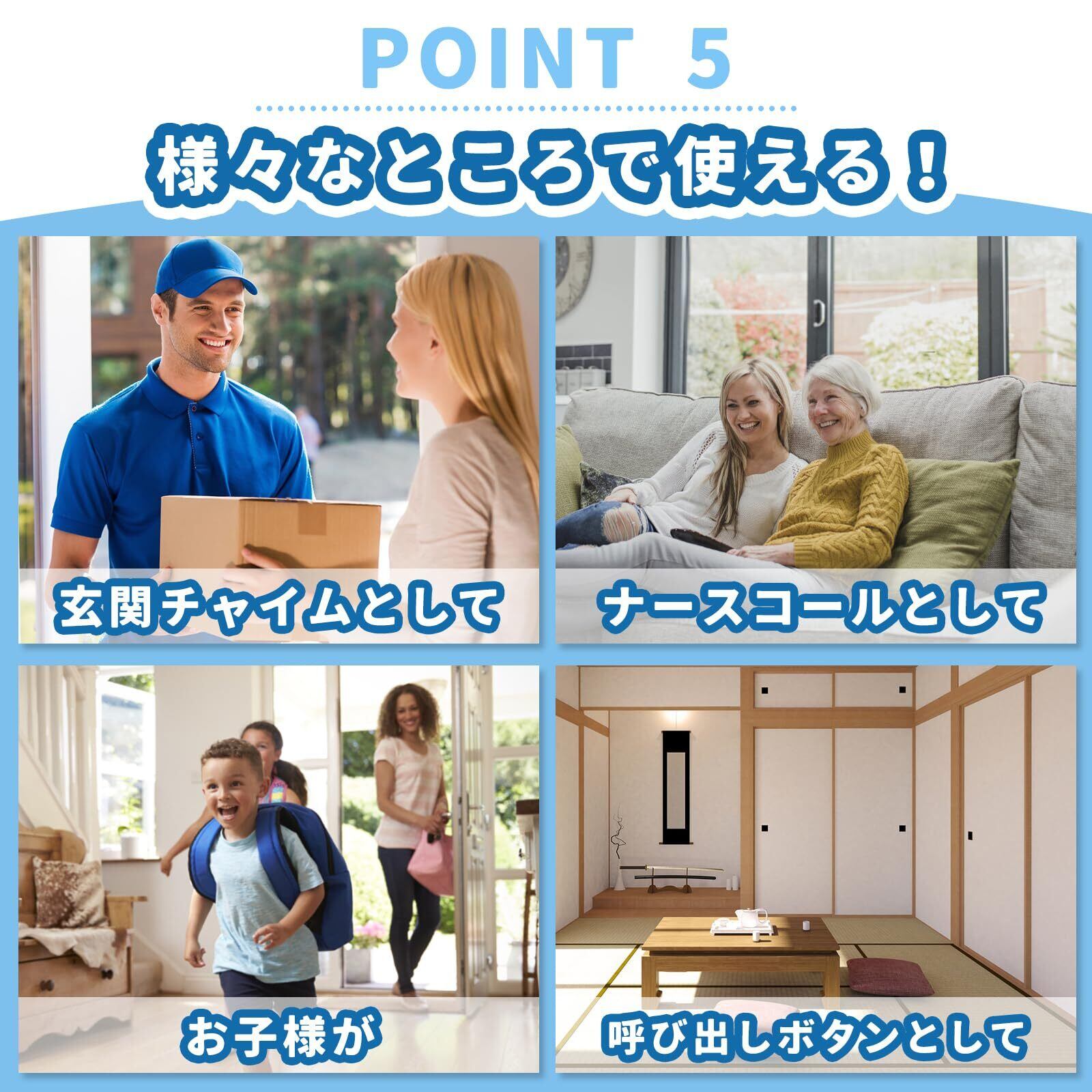 特徴 スマホ連動, ワイヤレス, 双方向音声, 工事不要