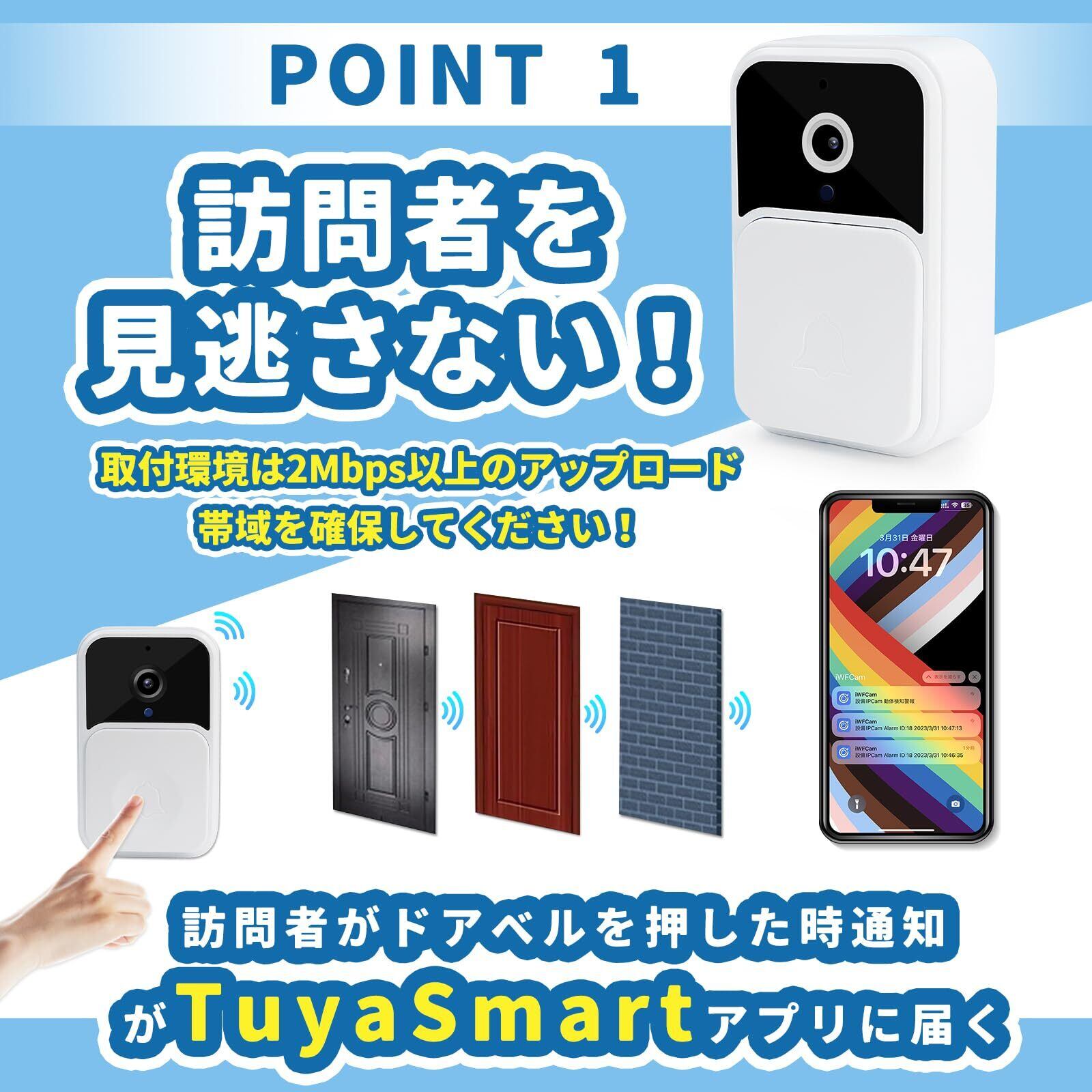 ビデオ通話機能: カメラ付きなので、スマホから来訪者の映像を確認できます。