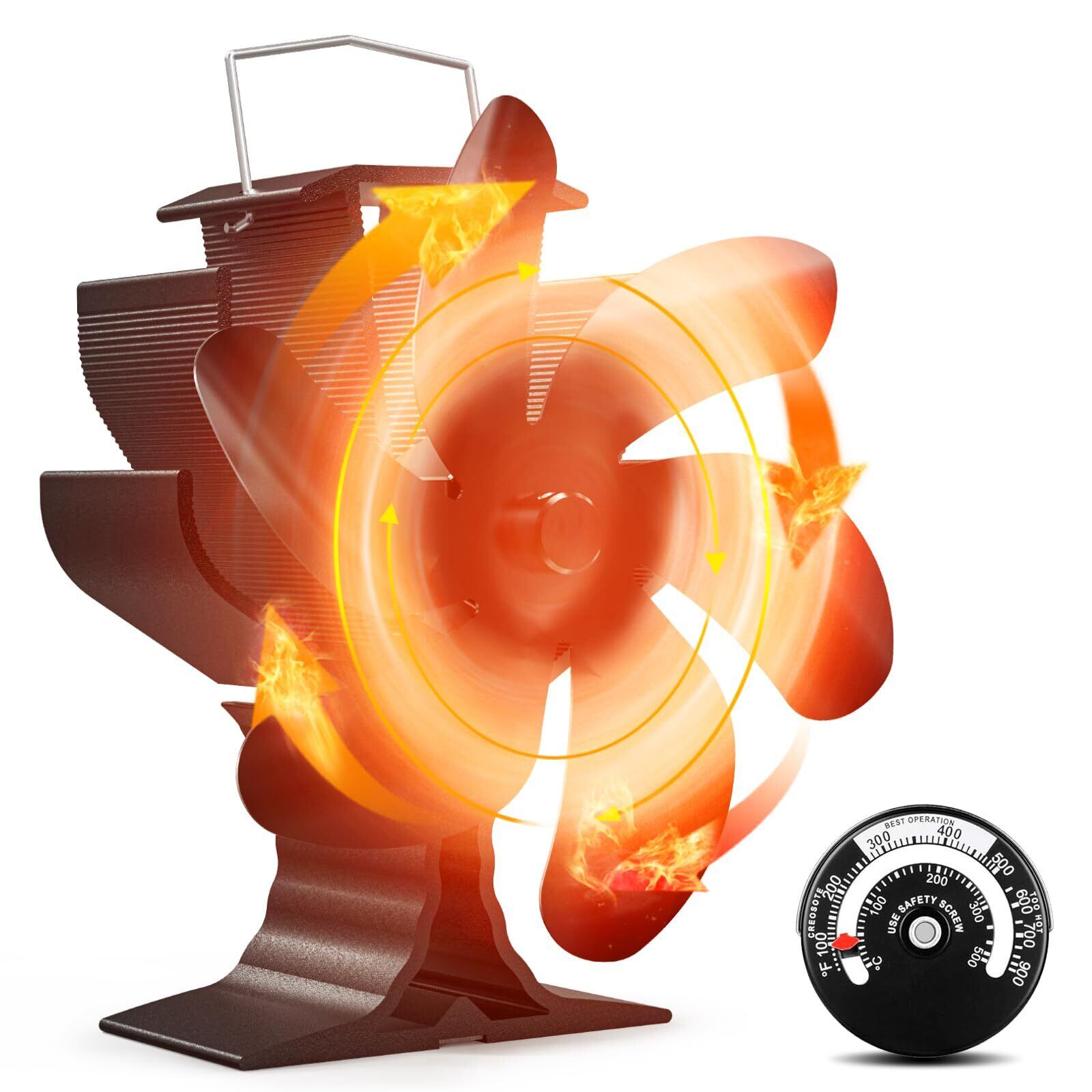 Signstek ストーブファン 石油ストーブファン 薪ストーブ用ファン エコファン 小型 静音 キャンプ用 火力熱炉 扇風機 空気循環 6枚羽 薪ストーブ 扇風機 電源不要 省エネ 暖炉ファン 温度計付き | KSショップ