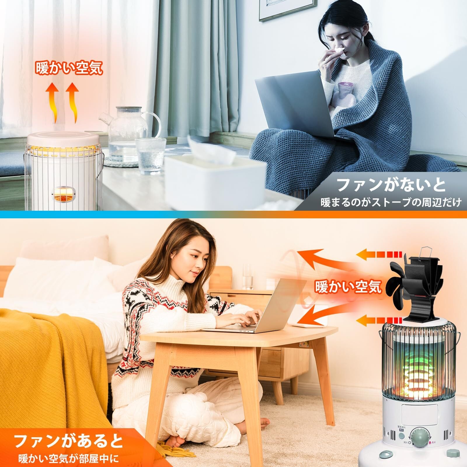 【 サービス 】 ご意見もしくはご使用中に不具合等がございましたら、お気軽にご連絡ください。・でもご遠慮なくお問い合わせください。ご注意:ストーブ扇風機はゼーベック効果の原理を利用して、高温になり過ぎるなら、温度差がなくて、動かなくなる可能性があります。最適な稼働温度は80~250℃でございます。(連続ご使用の場合、4時間ごとに一度冷めてからご使用ください。)