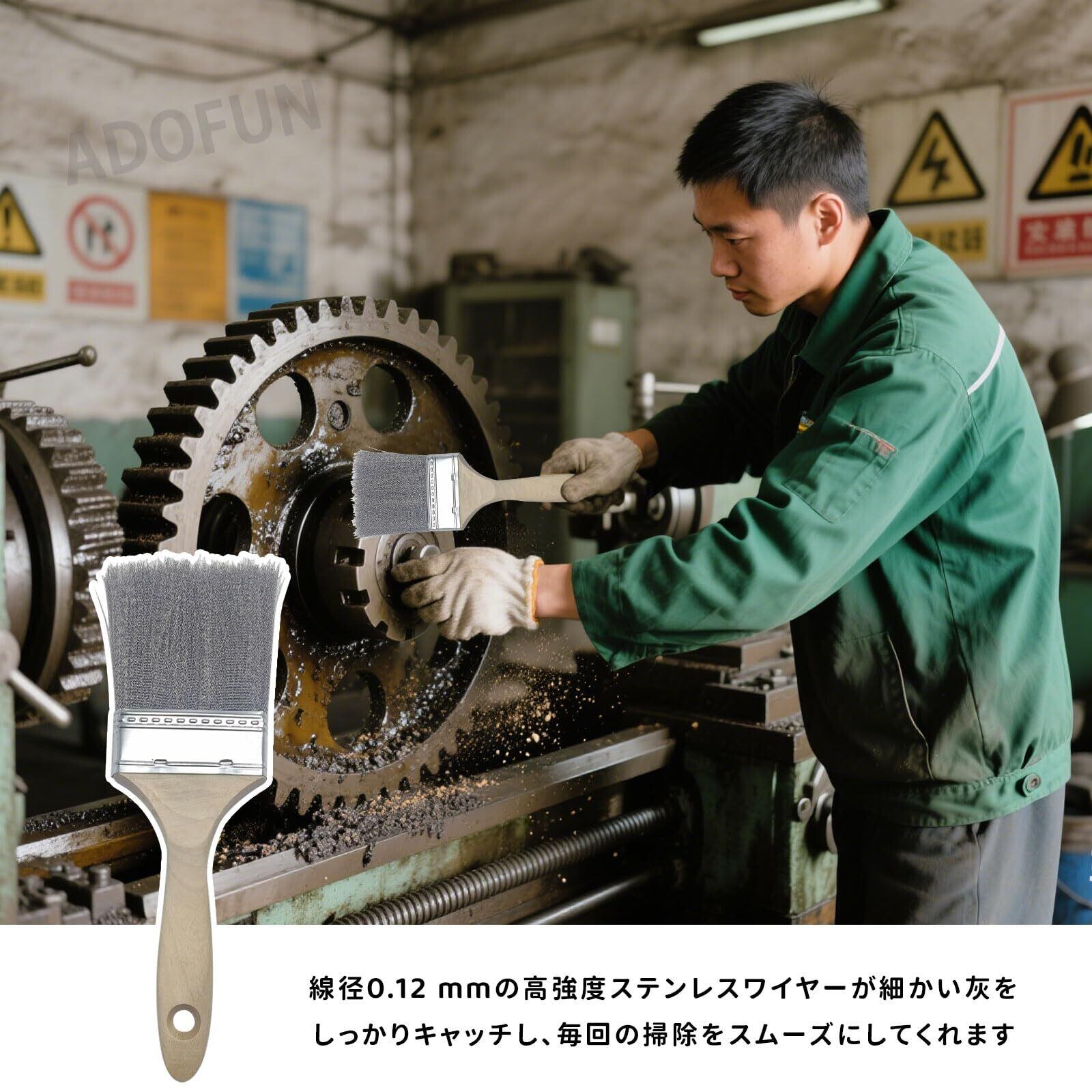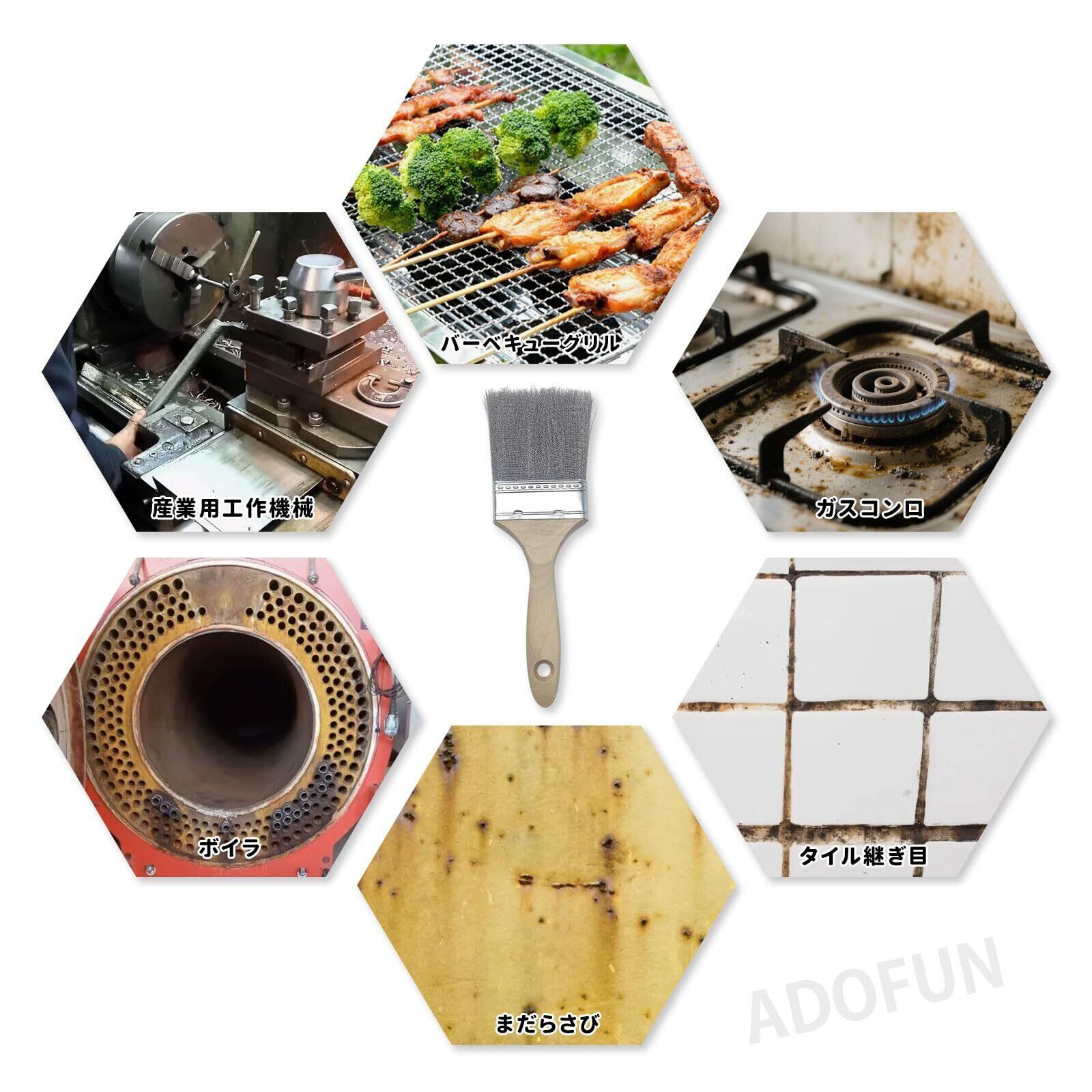 ADOFUN 焚き火ほうき ステンレス刷毛 焚き火台掃除ブラシ 洗浄用 旋盤機械ワイヤーブシ 車床機械掃除用 バーベキューグリル/焼き網洗浄ブラシ・工業用ステンレススチール汚れ落としブラシ 多用途刷毛