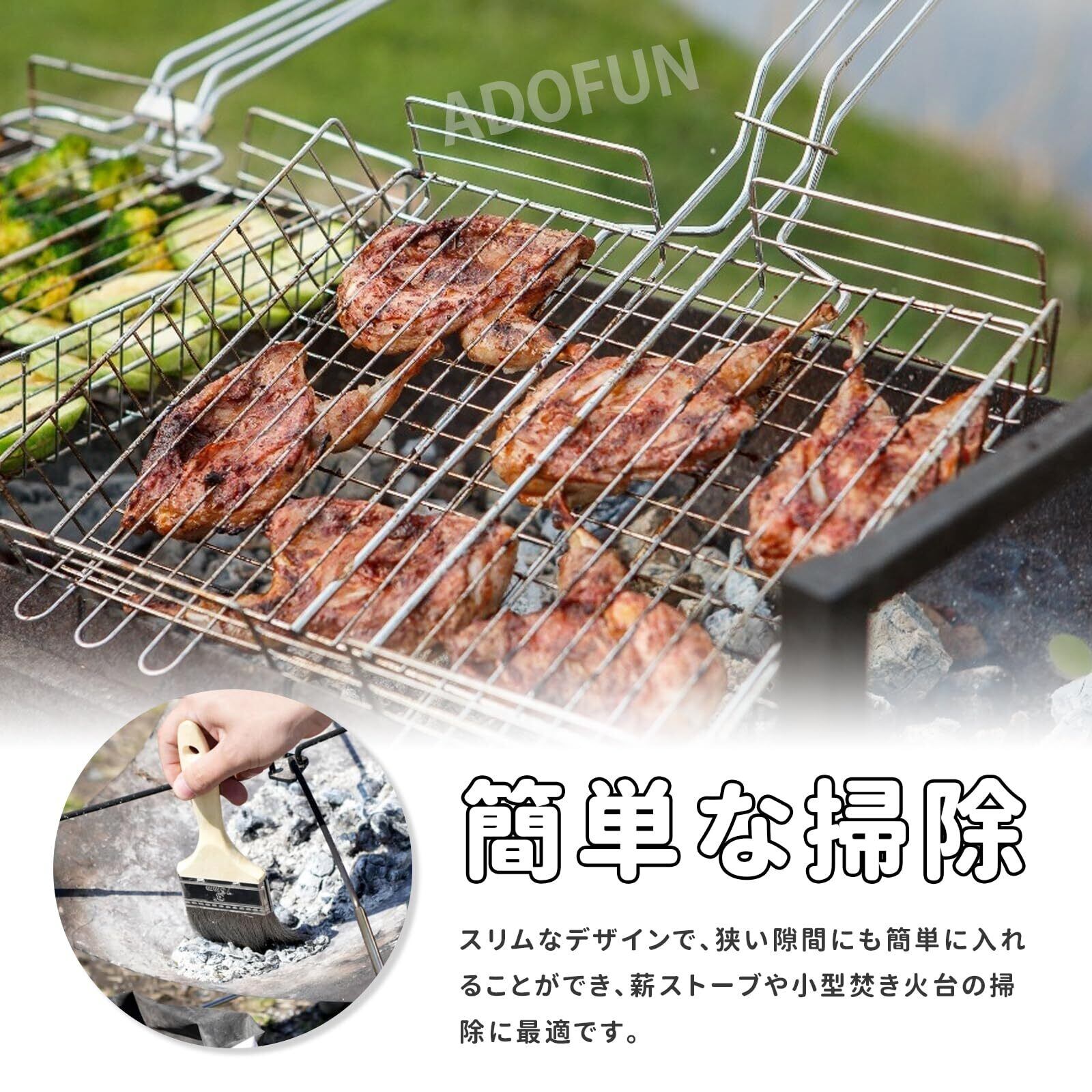 【高品質素材】:このブラシは高品質なステンレス製なので、高温の焚き火台に直接触れても平気。さらに耐蝕性に優れ、多湿環境でも耐久性抜群。過酷な使い方にも耐える、アウトドア掃除の頼もしい相棒です。
