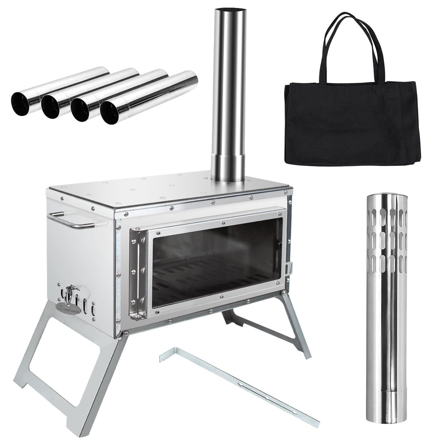 MOON LENCE 薪ストーブ 二次燃焼 耐熱ガラス窓 煙突 コンパクト キャンプストーブ テーブル暖炉 ウッドストーブ テント用 焚き火台コンロ BBQ 調理 暖炉 冬 収納袋付き | KSショップ