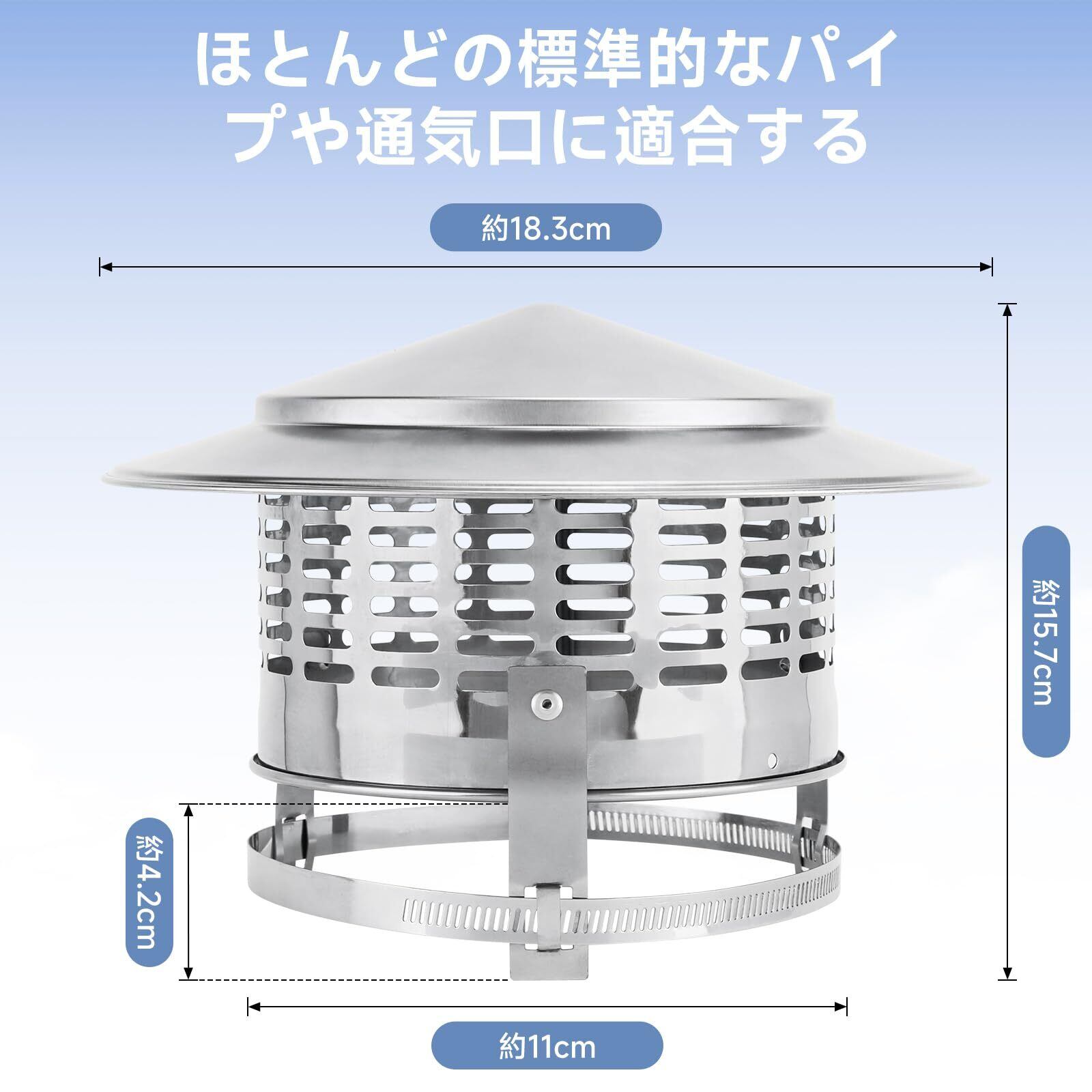 【幅広い用途と簡単な設置】 屋根の煙突、レンジフード、排気ダクトなど、さまざまな用途に対応。ほとんどの標準パイプに適合し、締め付け金属リング付き、煙突パイプの大きさに合わせて調節可能、簡単に取り付けです。