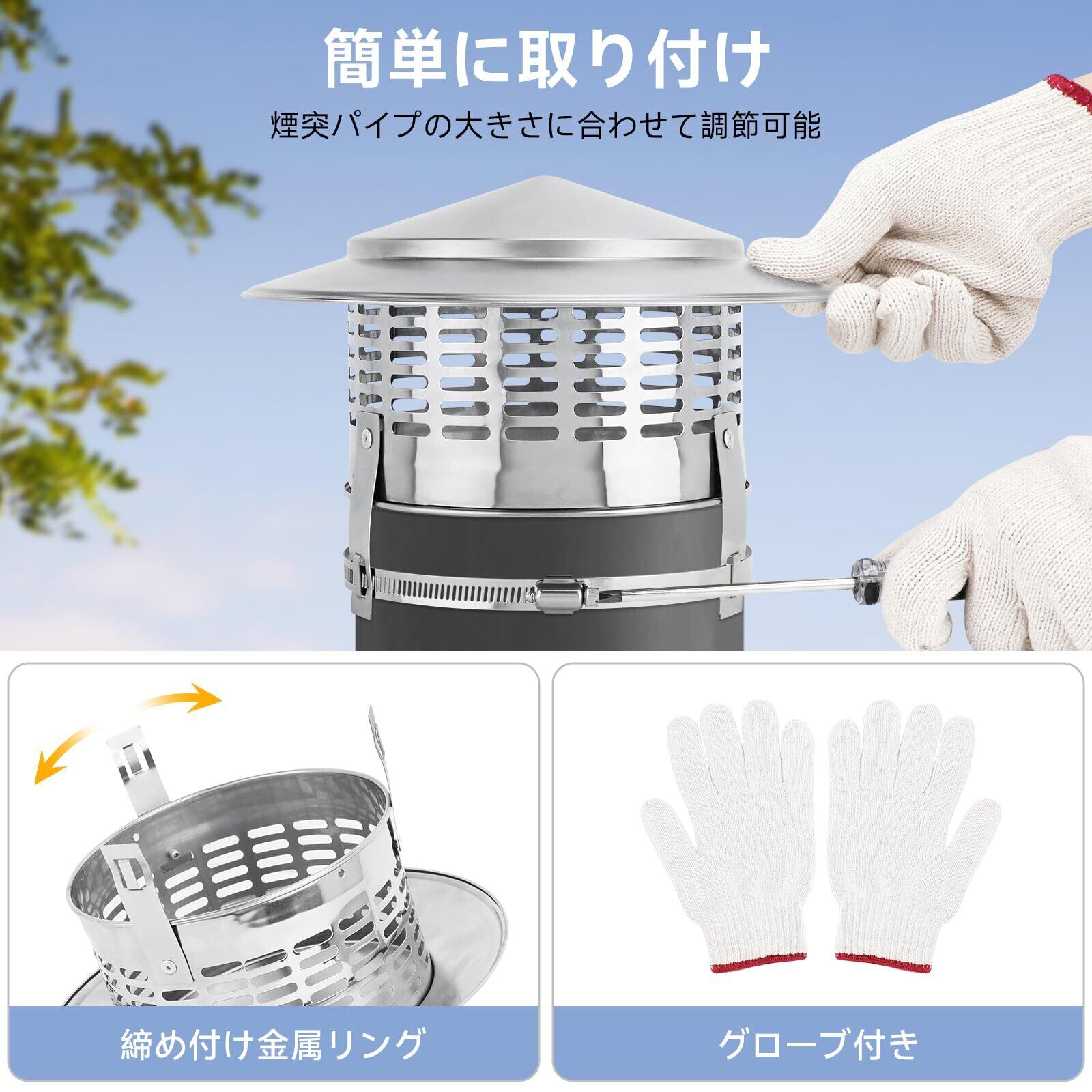 KOMCLUB 煙突ピーク ステンレス鋼 屋根煙突 煙突パイプレインカバー 暖炉 ストーブ煙突管 保護キャップ エンド加熱炉排気管 煙突レイン キャップパイプたるみ防止鳥トップ 傘の形 キャップ用 グローブ付き (11cm)