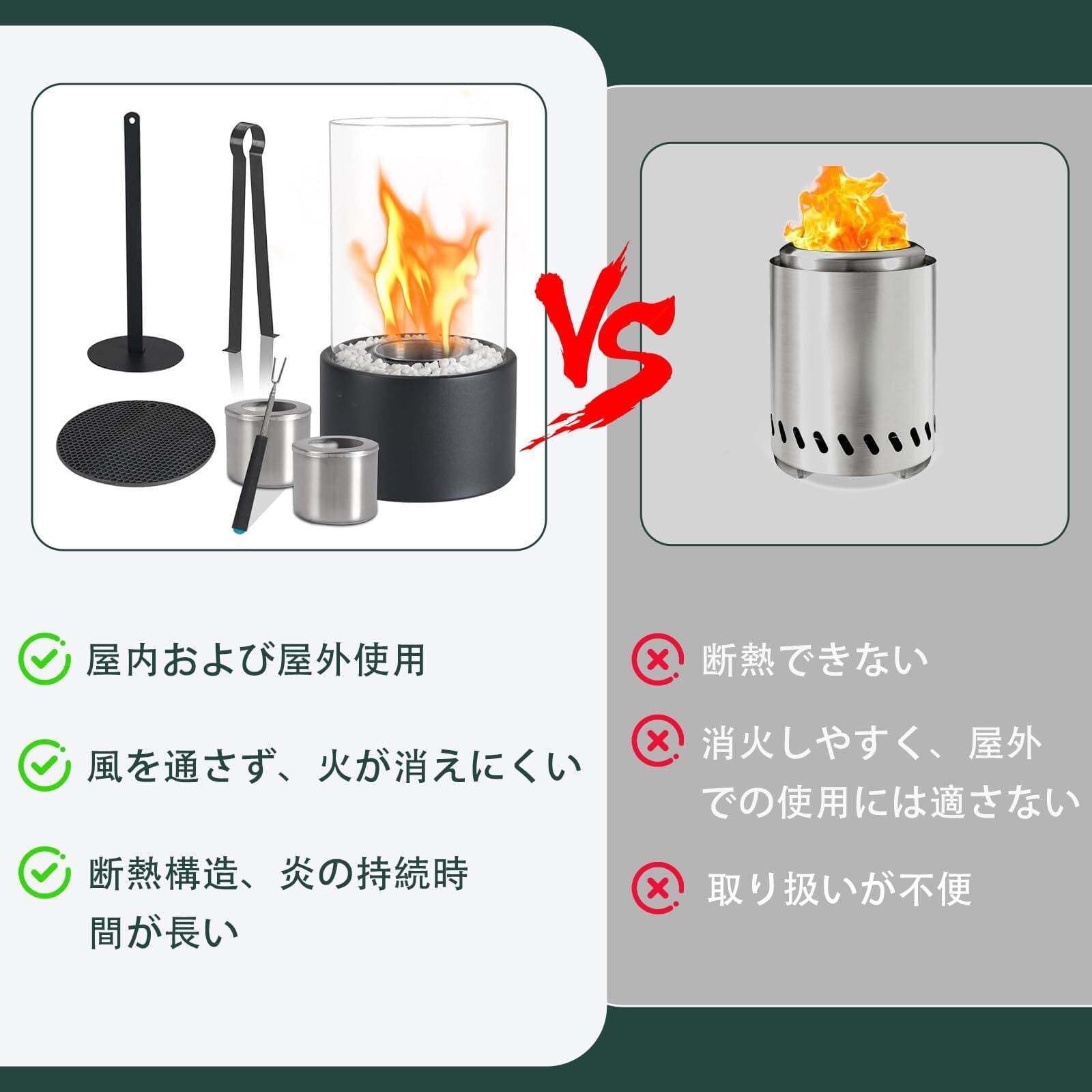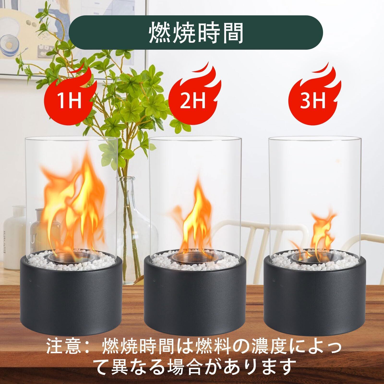 高品質な仕上がり:バイオエタノール ストーブのガラスは良好な光透過性を持っているので、より直感的に炎を見ることができます。 全体的に円筒形のデザイン、均等な熱放散、360度全方位のディスプレイを行うことができます