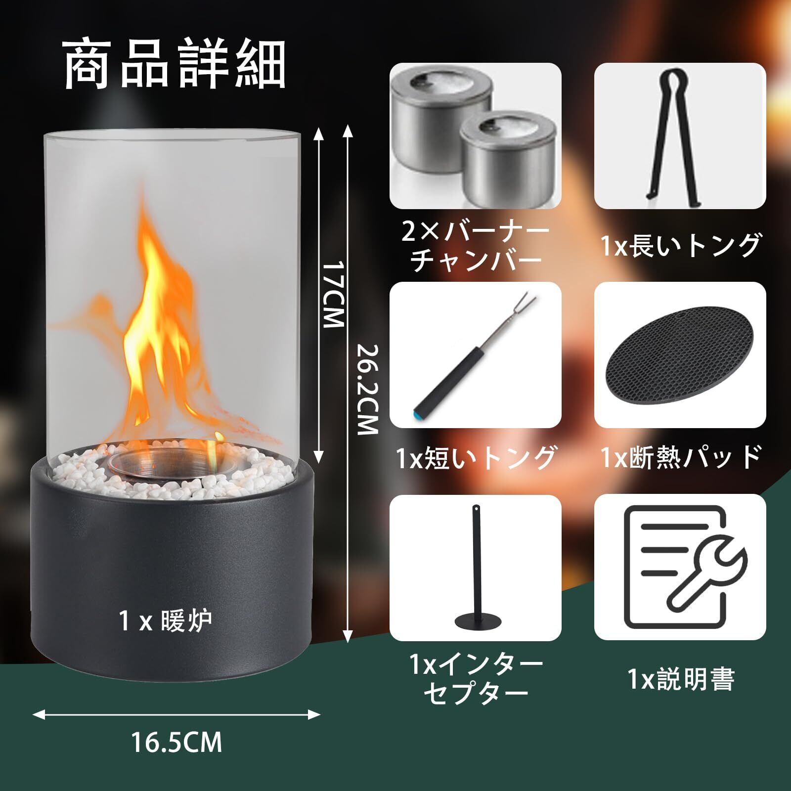 暖炉 バイオエタノール暖炉 円形 クッカー フォーク 保温マット クリップ 防風ガラスカバー付き 高さ 28cm 卓上暖炉 持ち運び便利 屋内 屋外両用 ギフトに適用