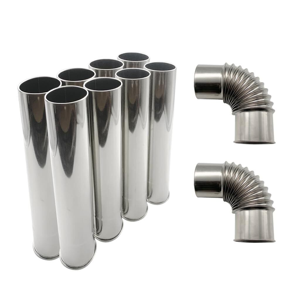 延長煙突 薪ストーブ煙突 直管+曲管セット 直径6cm 厚手 円形の端 ステンレス製 キャンプ用 ストーブパイプ 家用ガスパイプ (8直管+2曲管セット)