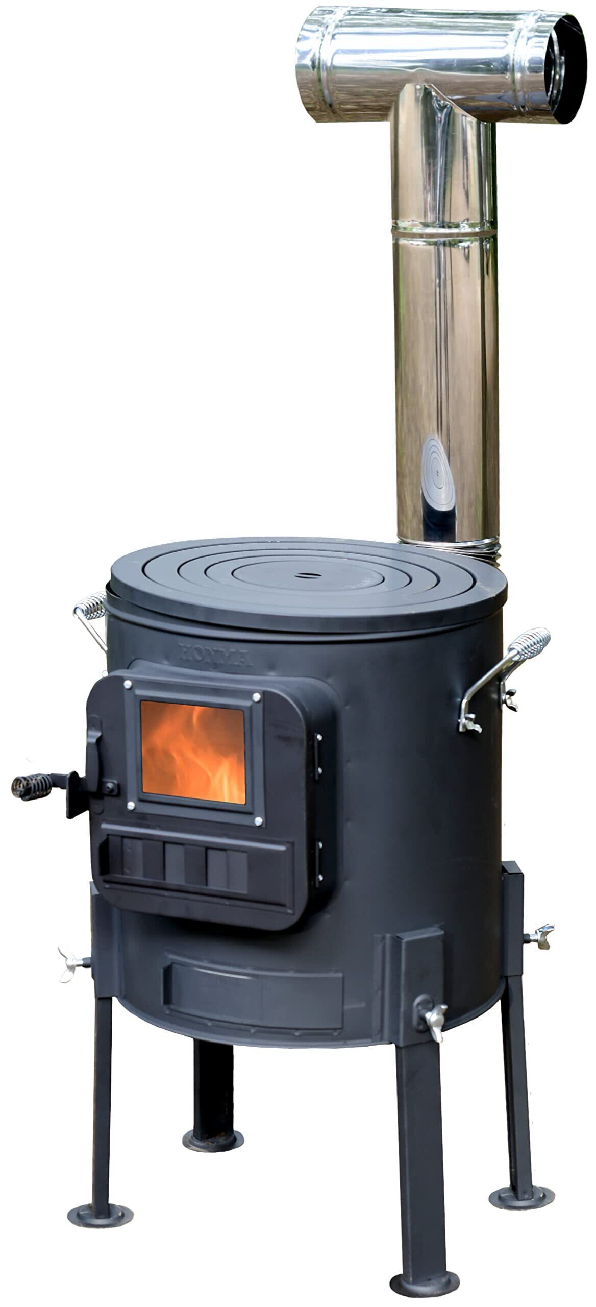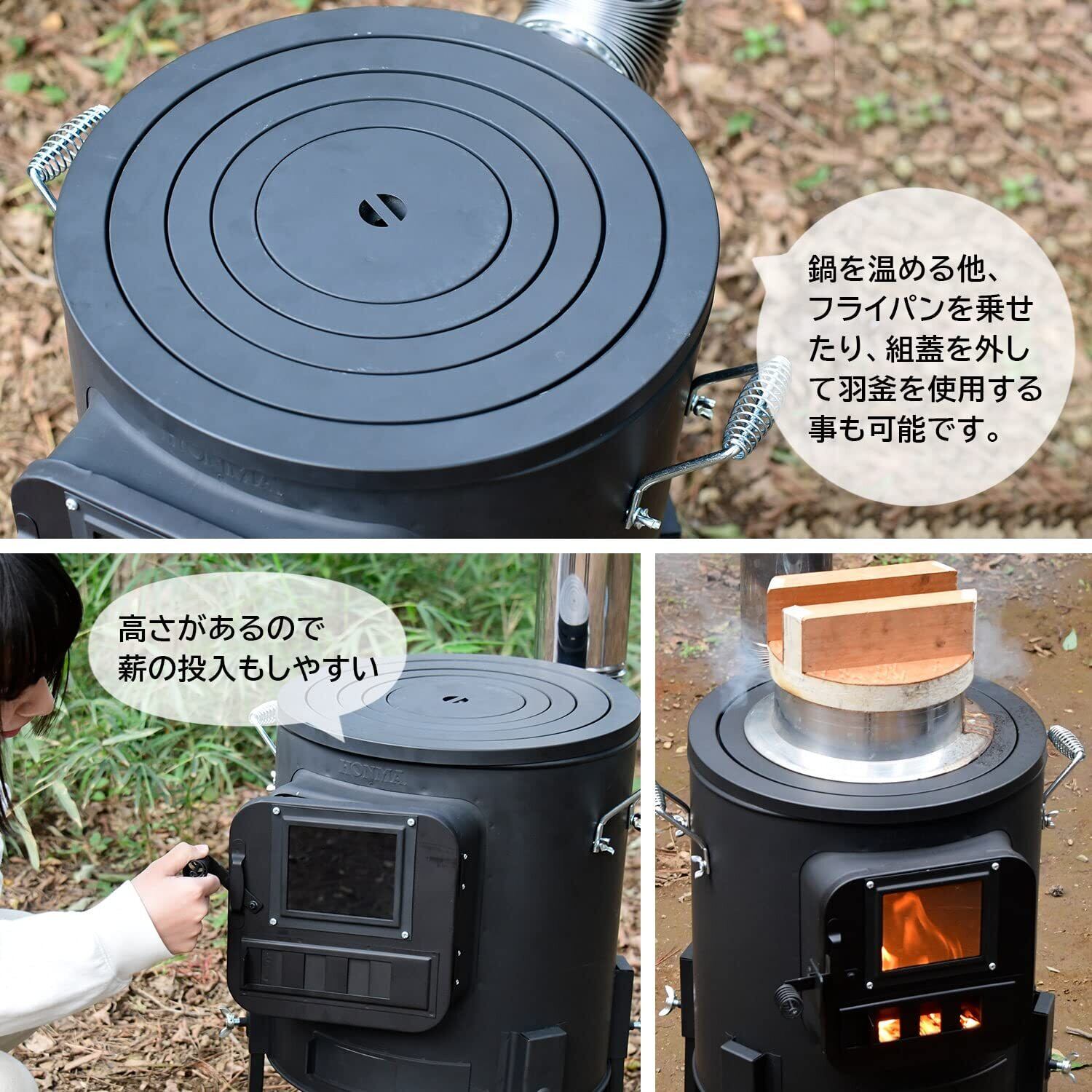 【 限定】 ホンマ製作所(Honma Seisakusyo) 薪ストーブ クッキングストーブ (煙突ステンレス/脚高タイプ/黒耐熱塗装) 簡単組立 キャンプ 暖炉 アウトドア 屋外 ブラック RS-41A