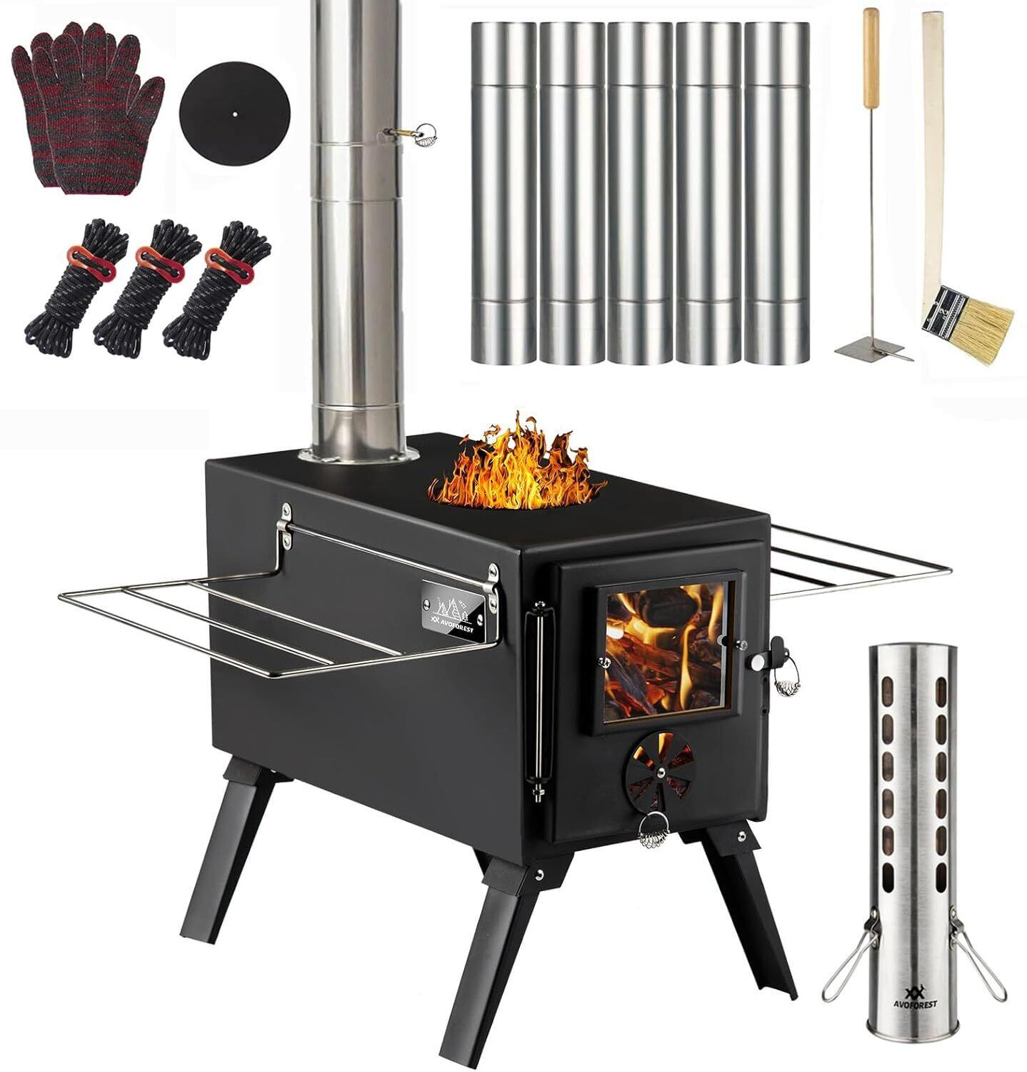 薪ストーブ AVOFOREST キャンプ用 折りたたみ式 7段階煙突 耐熱ガラス グリッド棚付き コンパクト収納 スチール製 耐熱塗装 焚火台 アウトドア ウッドストーブ テント用 バーベキューBBQ 暖炉 冬(薪ストーブ(スチール製)/ ブラック) | KSショップ